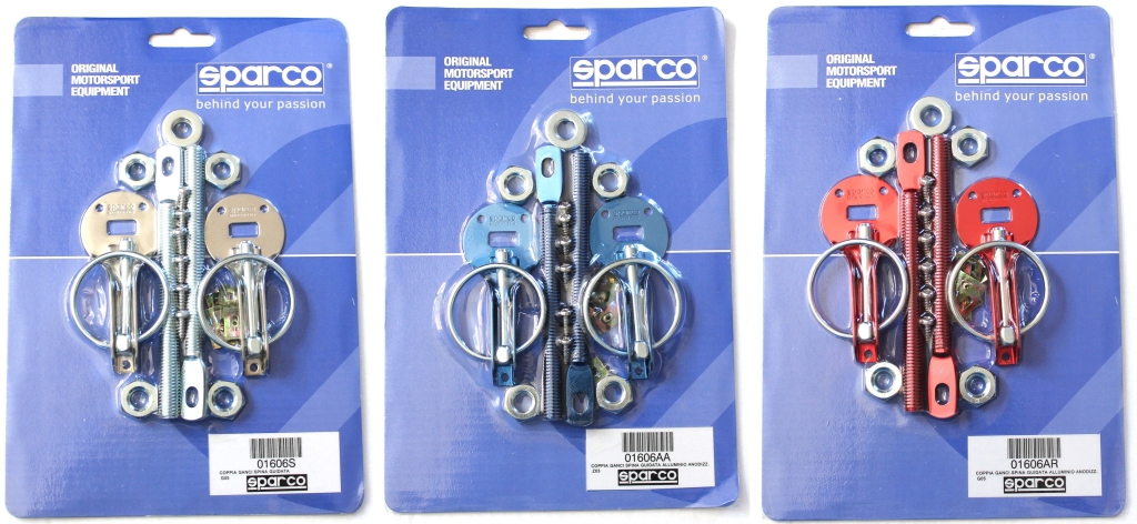 Оригінальні шпильки капота Sparco, виготовлені з міцного алюмінієвого сплаву. Застібки прості в установці, доступні в трьох кольорах - сріблястому, синьому та червоному. На наших аукціонах також є пружинні застібки для кріплення на двері багажника.