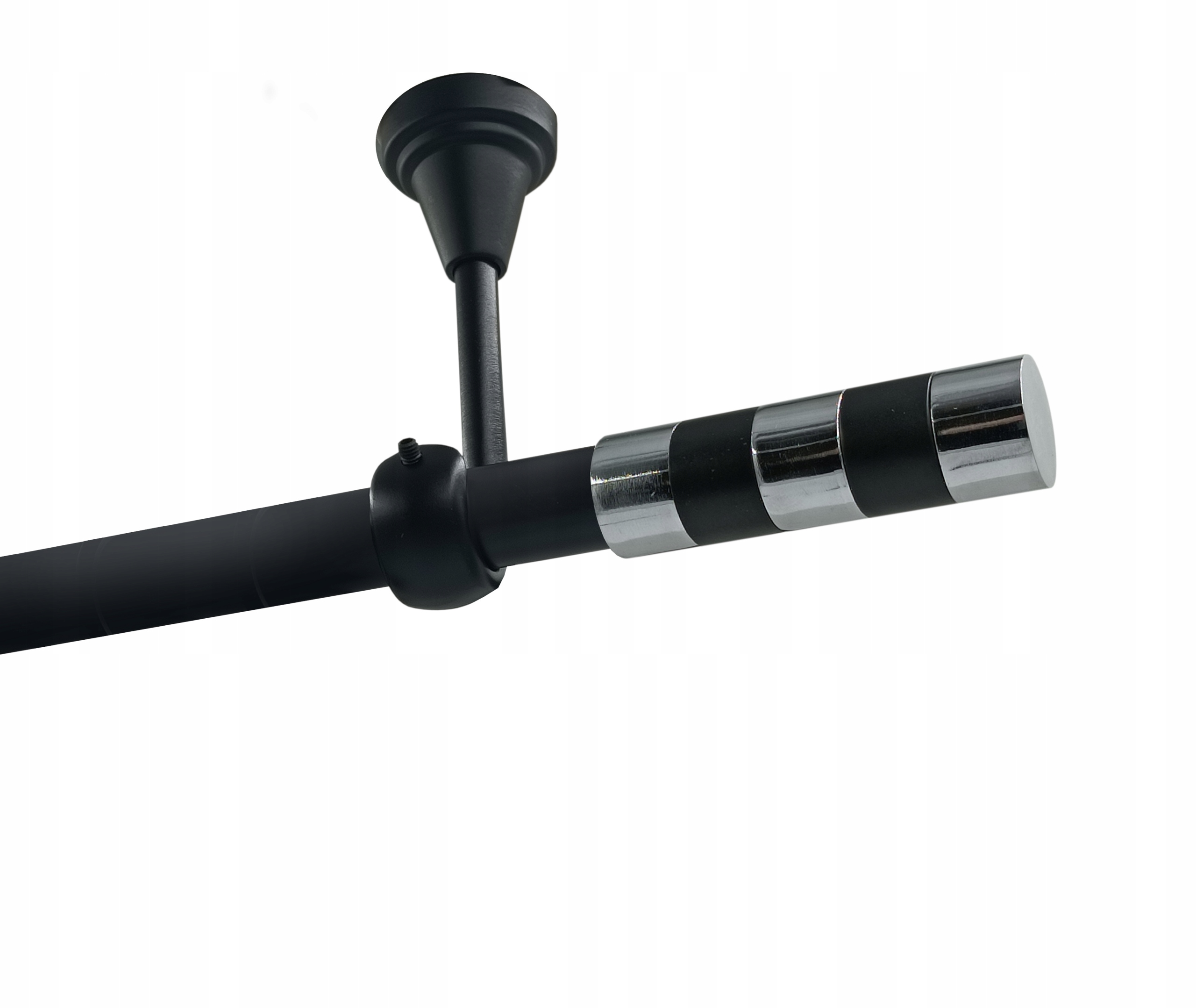 Ціна в пропозиції стосується повної одиночної стельової завіси діаметром 19 мм та 480 см у кольоровому чорному килимку з кінцем чорного та хрому.