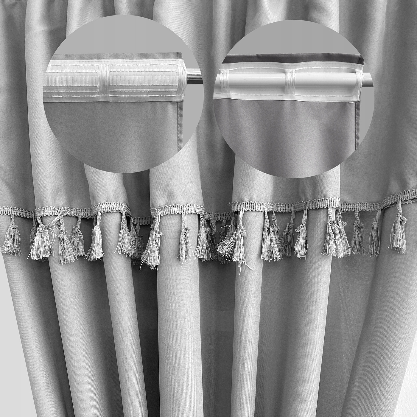- Штора оснащена практичною збірною стрічкою, яка полегшує підвішування та ідеальне розміщення тканини на карнизі, що поєднується з різними стилями вікон.