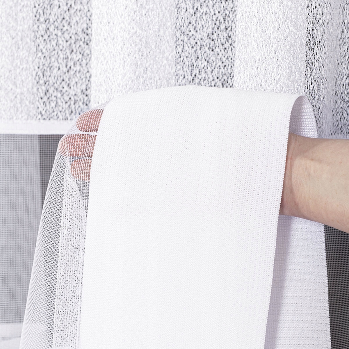 Біла жаккардова штора з товстими геометричними смугами, висота 250 см, продається на метри
