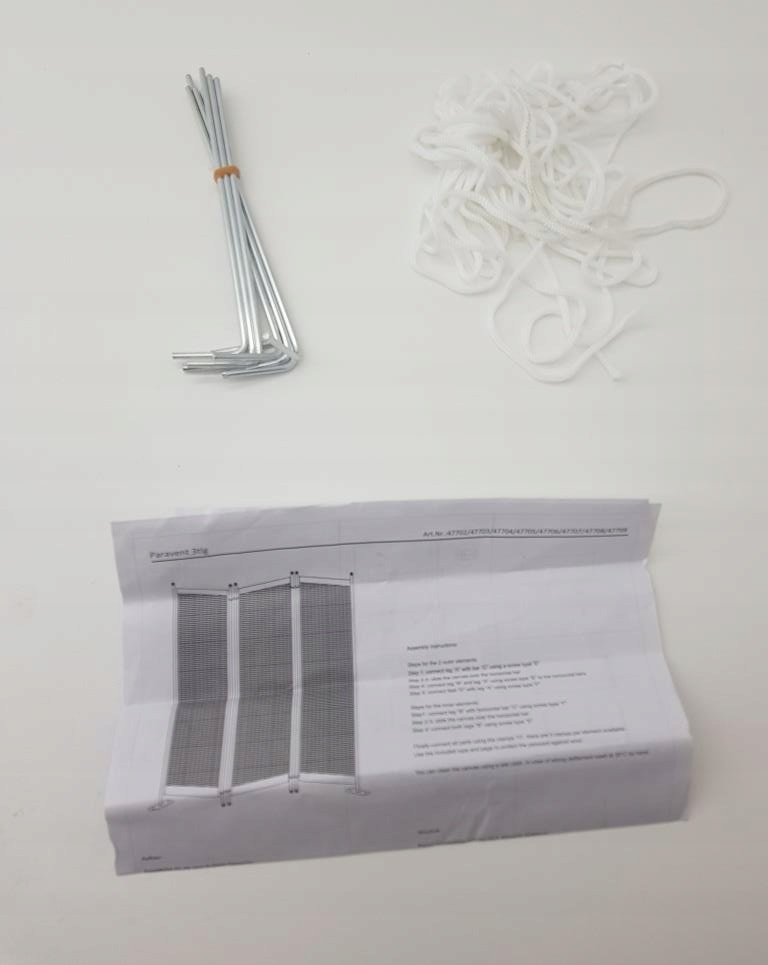 - Характеристики: Екран із трьох частин 165x170 см, білий. Універсальний, багатофункціональний - його можна вільно конфігурувати. Чохол із 100% поліестеру служить екраном для конфіденційності всередині та зовні. Мотузки для кріплення та кілки вже включені для використання на вулиці. Товар поставляється в розібраному вигляді для самостійного монтажу.