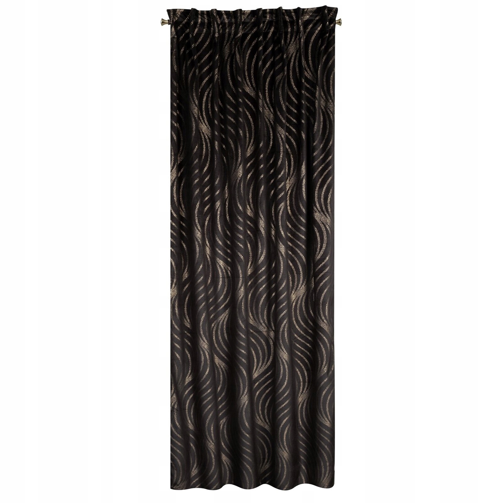 Цю елегантну модель штор характеризує красивий принт кольору шампанського на чорному. Завдяки високій вазі матеріалу 250 GSM штора міцна і міцна. Виготовлений повністю з високоякісного 100% поліестеру, він гарантує не тільки гарний зовнішній вигляд, але й легкий у чищенні.