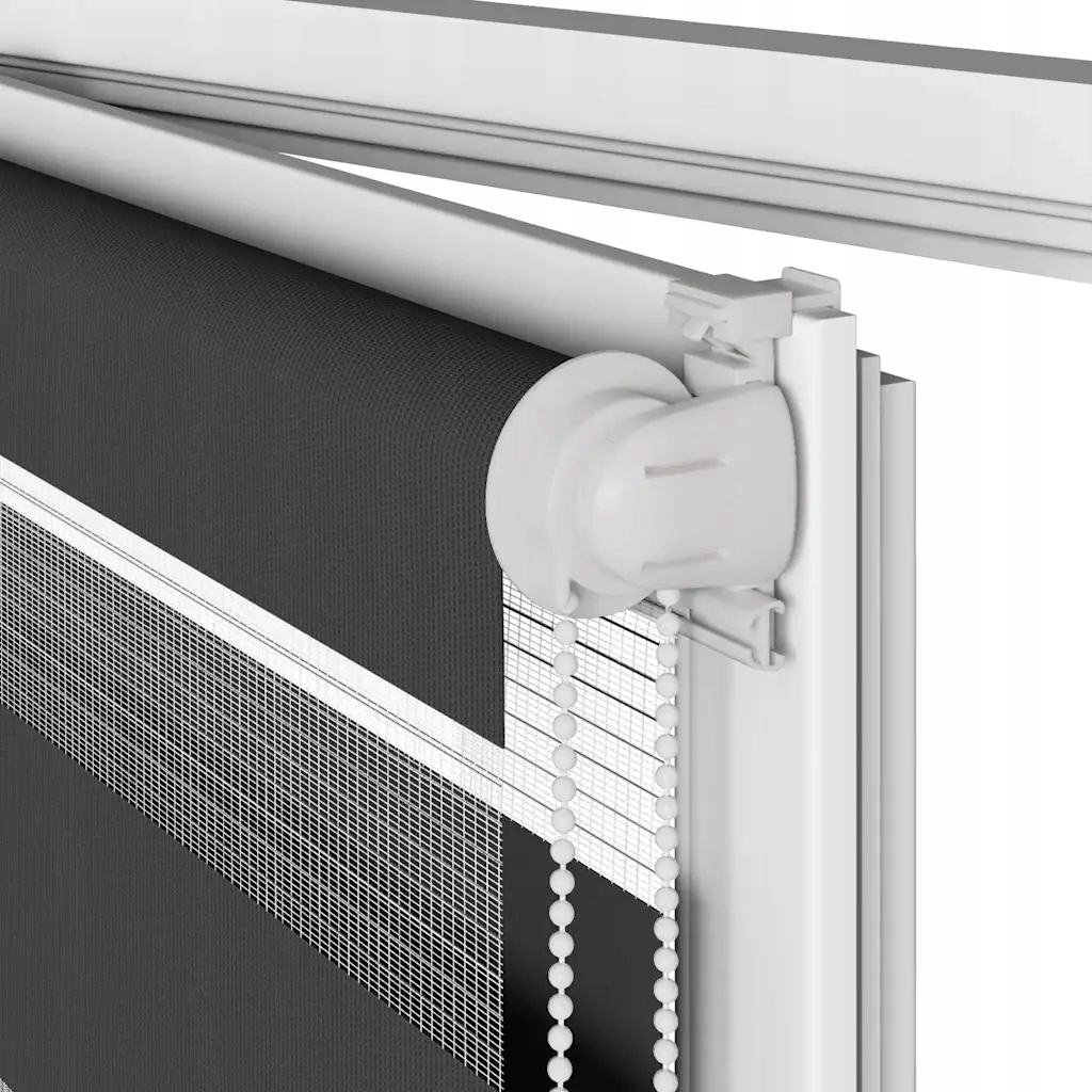 - Конфіденційність і захист від сонця: двошарова конструкція включає панелі з прозорої та непрозорої тканини, що чергуються. Світлом можна легко керувати за допомогою ланцюгового підйомника, що дозволяє плавно регулювати освітлення кімнати від напівпрозорого до абсолютно темного.