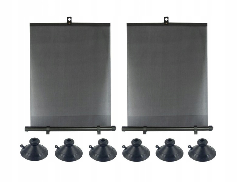 В набір входять 2 рулонні штори сонцезахисні для автомобіля з гачками, 6 присосок.