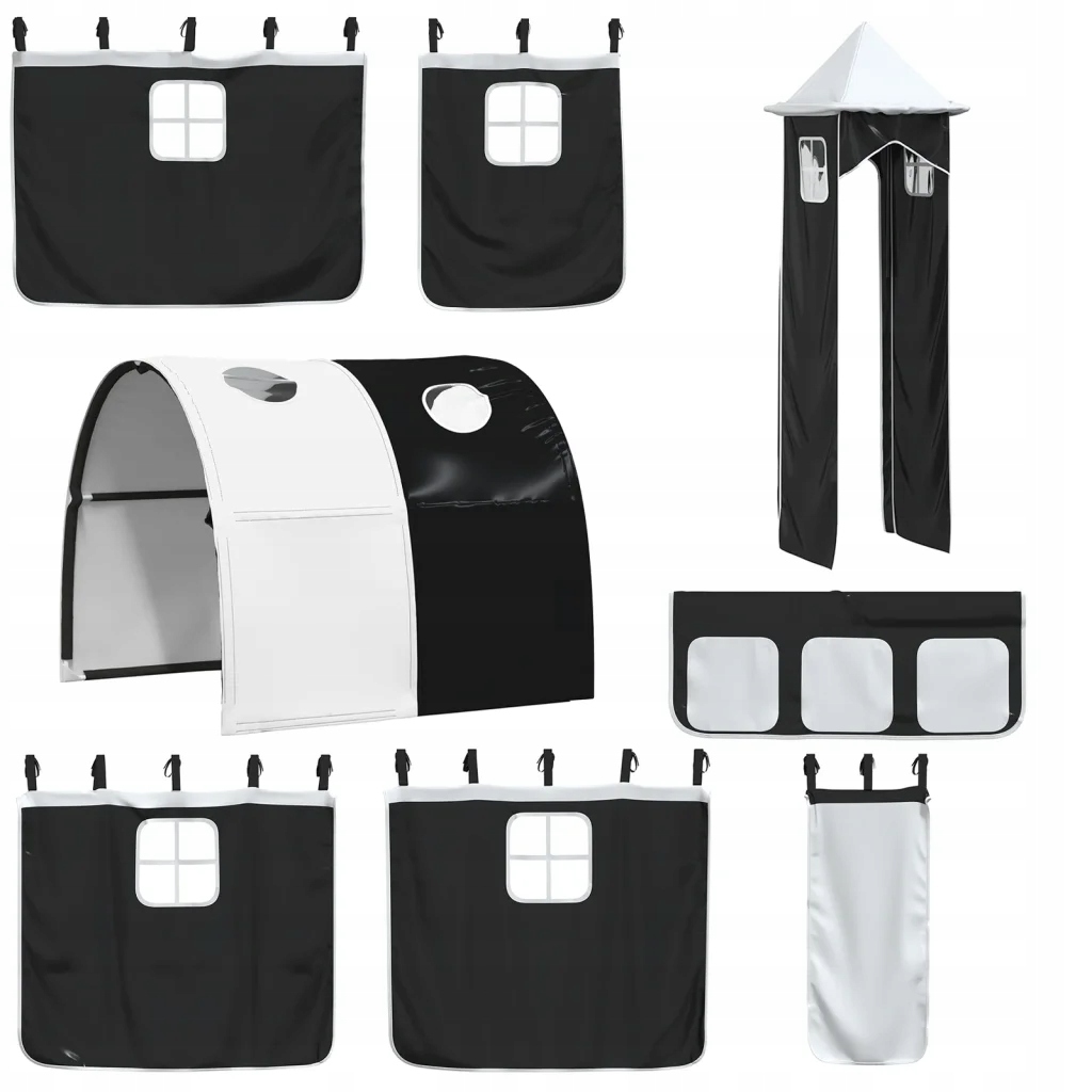 штори, тунель та вежа для двоярусного ліжка, біле та чорне