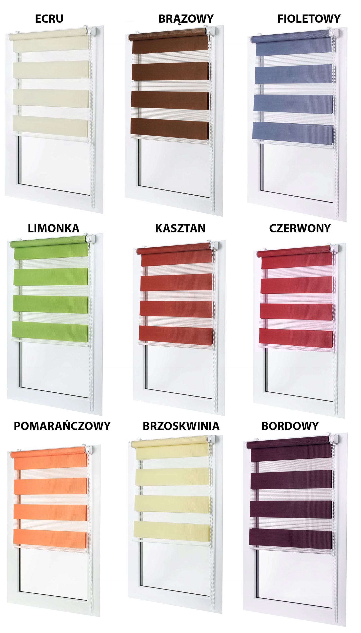 Ми запрошуємо вас ознайомитися з нашим широким асортиментом кольорів тканини, доступних для жалюзі «День-Ніч».