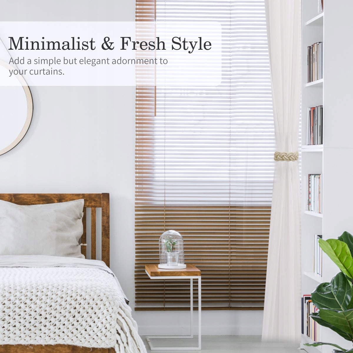 Магнітні зав’язки: постачаються з магнітною дерев’яною пряжкою та сильний магніт міцно тримає штори. Залишивши штори опущеними, ви можете вільно фіксувати ці стяжки в будь-якому положенні штори, це легко використовувати.