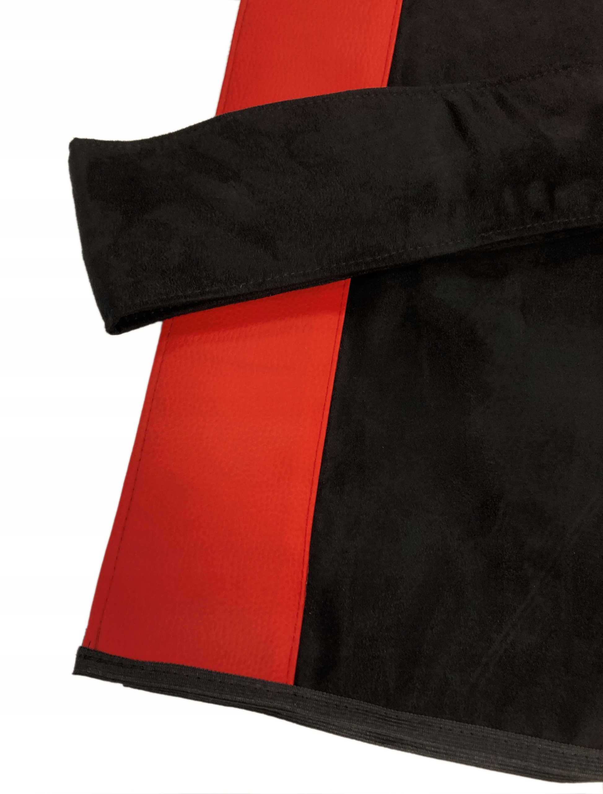 Кожна бічна штора оздоблена кромкою з екошкіри. Ширина краю 9 см. - дивіться фотографії