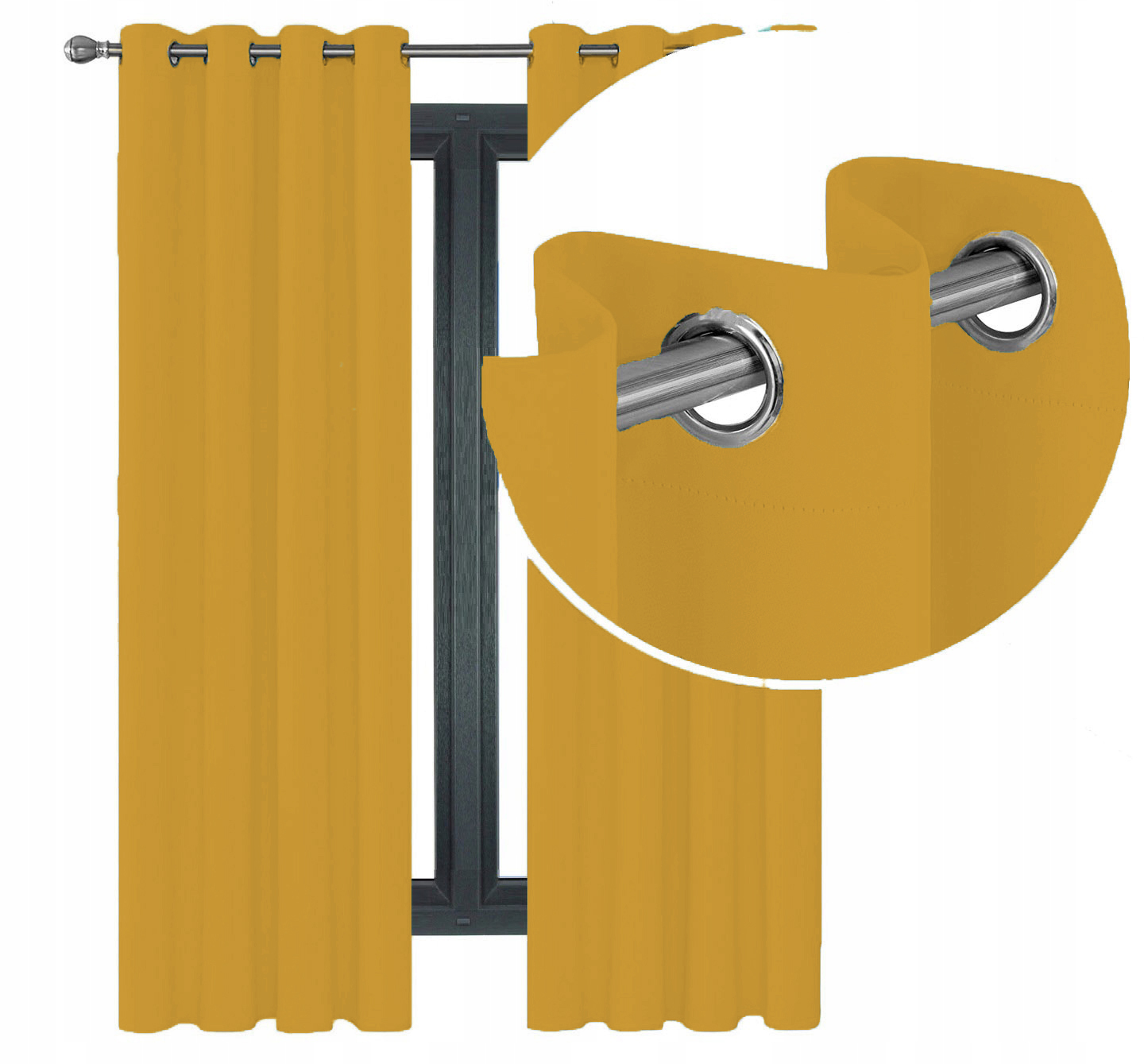 Готова штора з люверсами та колесами. Дуже якісна тканина. Металеві прокладки, внутрішній діаметр приблизно 40 мм і зовнішній діаметр приблизно 70 мм. Дуже гарні, яскраві кольори, які не вимиваються, зберігають колір протягом дуже тривалого періоду використання. Дуже акуратно пошита. Подвійна прошита стрічка жорсткості під люверсами. Штори упаковані в фольговану упаковку. На кожній шторі є ярлик виробника з інструкцією щодо використання та прання. Дуже багата палітра кольорів гарантує, що кожен знайде свій колір.