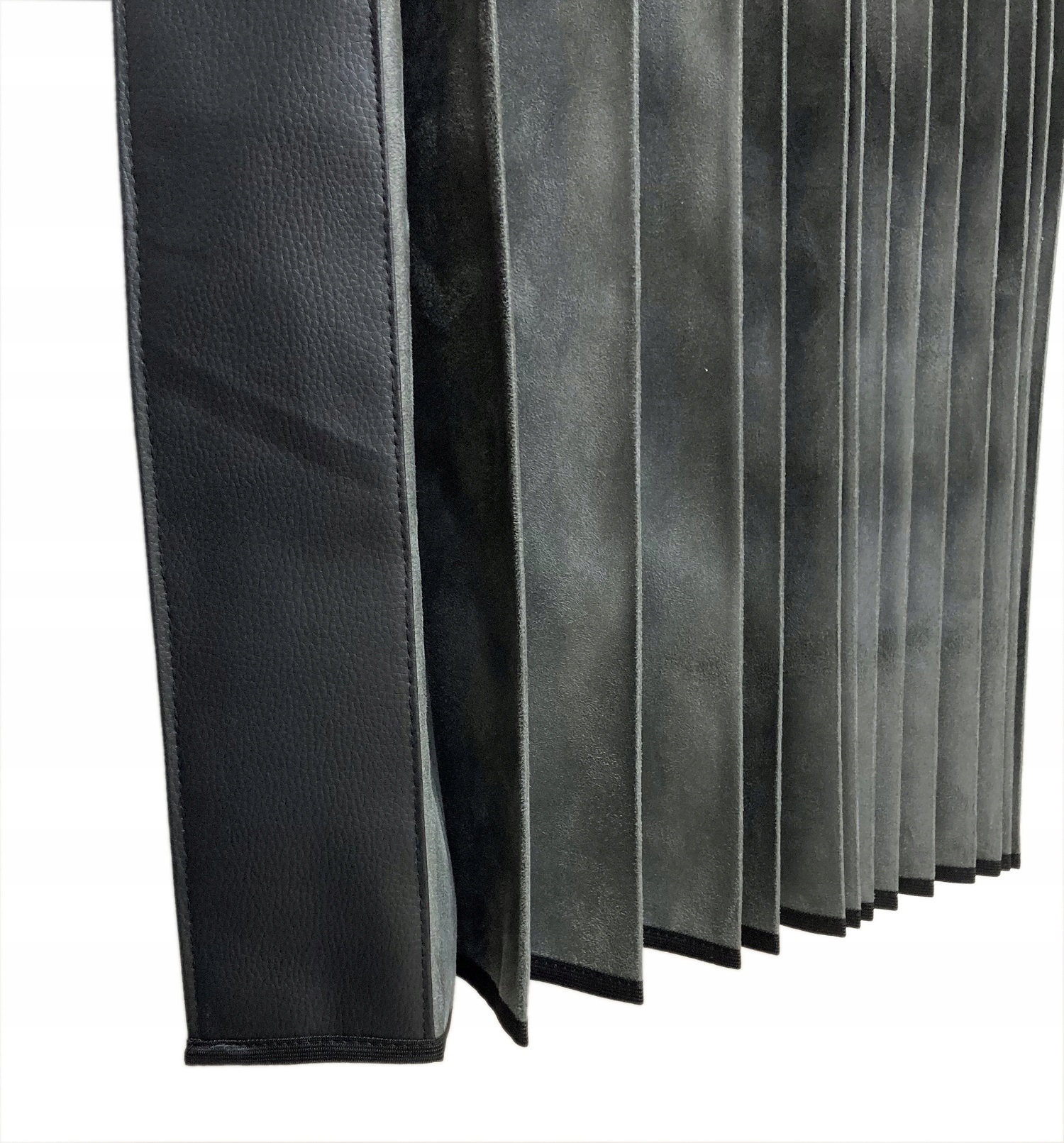 ПЕРЕДНЯ ЧАСТИНА ШТОРИ - КРАЙ ОБРОБЛЕНИЙ ШКІРЯНИМ МАТЕРІАЛОМ, ЩО НАДАЄ ЖОРСТКОСТІ ВСІЙ КОНСТРУКЦІЇ ТА ПОЛЕГШУЄ СКЛАДАННЯ ВНОЧІ