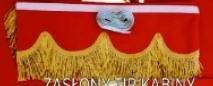 № 5 - Штори плісе (червона, чорна обробка) + волан (червона, золота обробка)