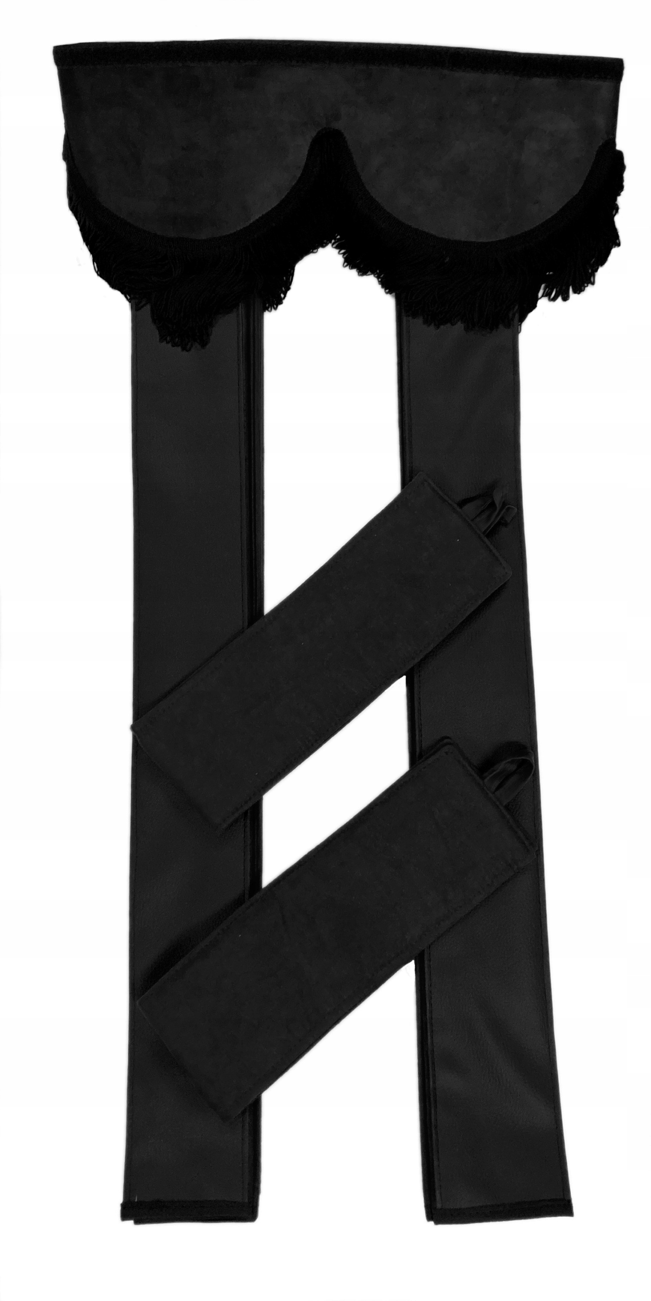 ПЕРЕДНЯ ЧАСТИНА ШТОРИ - КРАЙ ОБРОБЛЕНО ШКІРЯНОЮ МАТЕРІАЛОМ, ЩО ДОДАЄ ЖОРСТКОСТІ ВСІЙ КОНСТРУКЦІЇ ТА ЗРОБЛЯЄ ЛЕГШЕ СКЛАДАННЯ ВНОЧІ