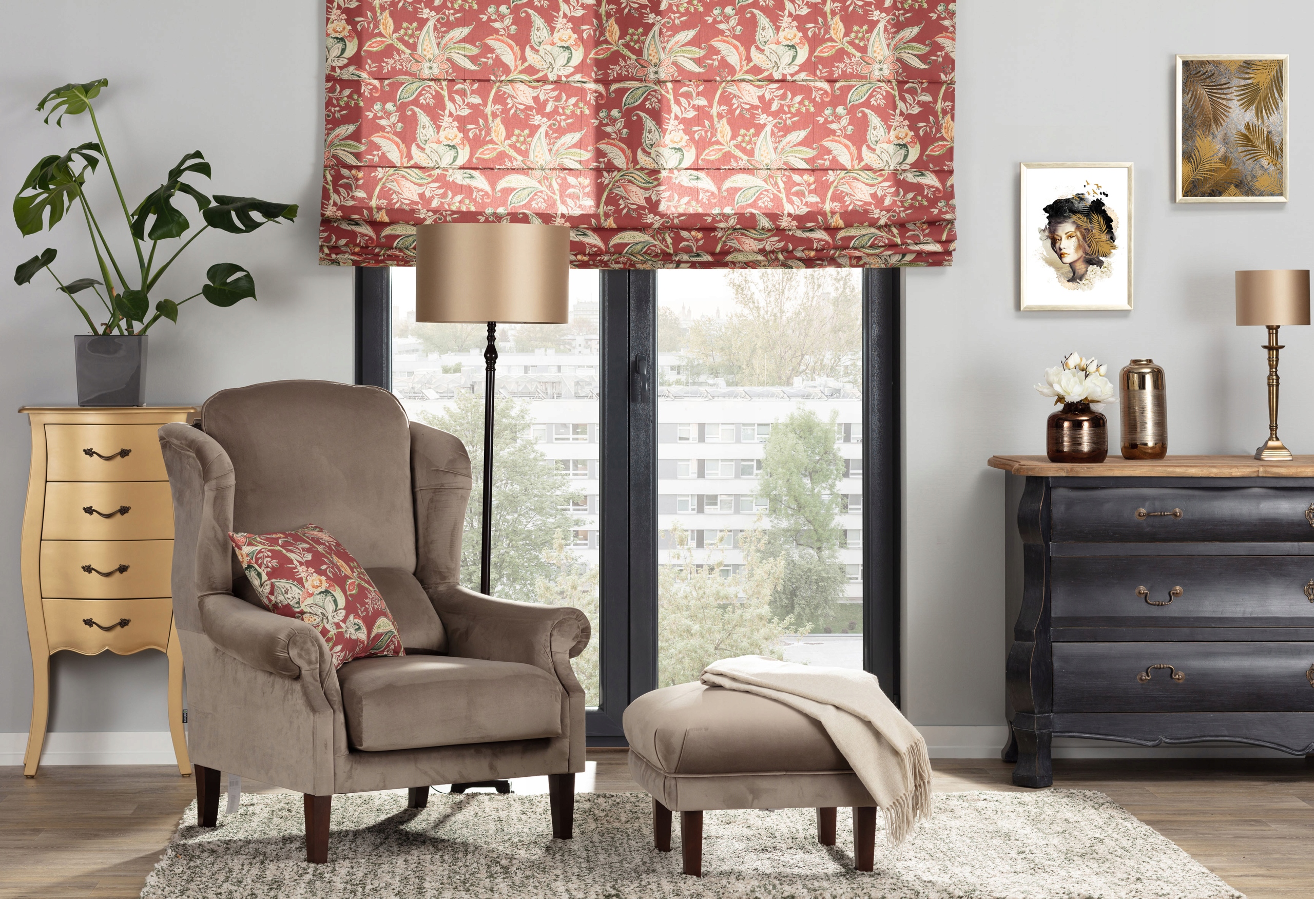Римська штора Verona, ширина 160 x довжина 170 см, рослинні та квіткові візерунки на червоно-цегляному тлі, колекція Gardenia