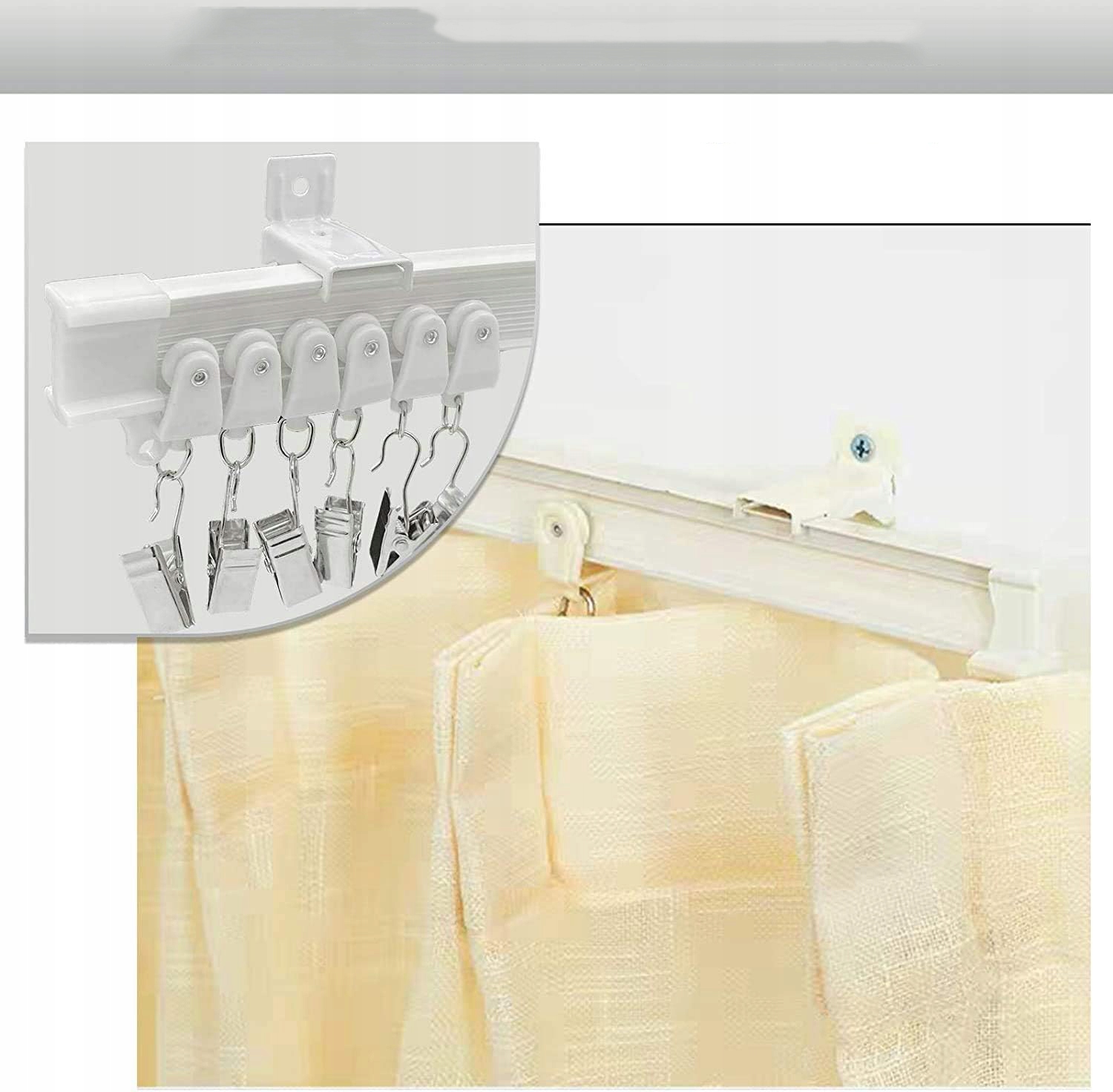 ✔️✔️ ВИСОКА ЯКІСТЬ, ДОВГОВІЧНІСТЬ - Система карнизів виготовлена з матеріалу ПВХ зі сталевим листом всередині, який легко згинається, але міцний і довговічний; Планери карнизів виготовлені зі сталі 304, товщі за звичайні ролики та мають більшу вантажопідйомність, яка може витримувати до 6,5 фунтів на дюйм.
