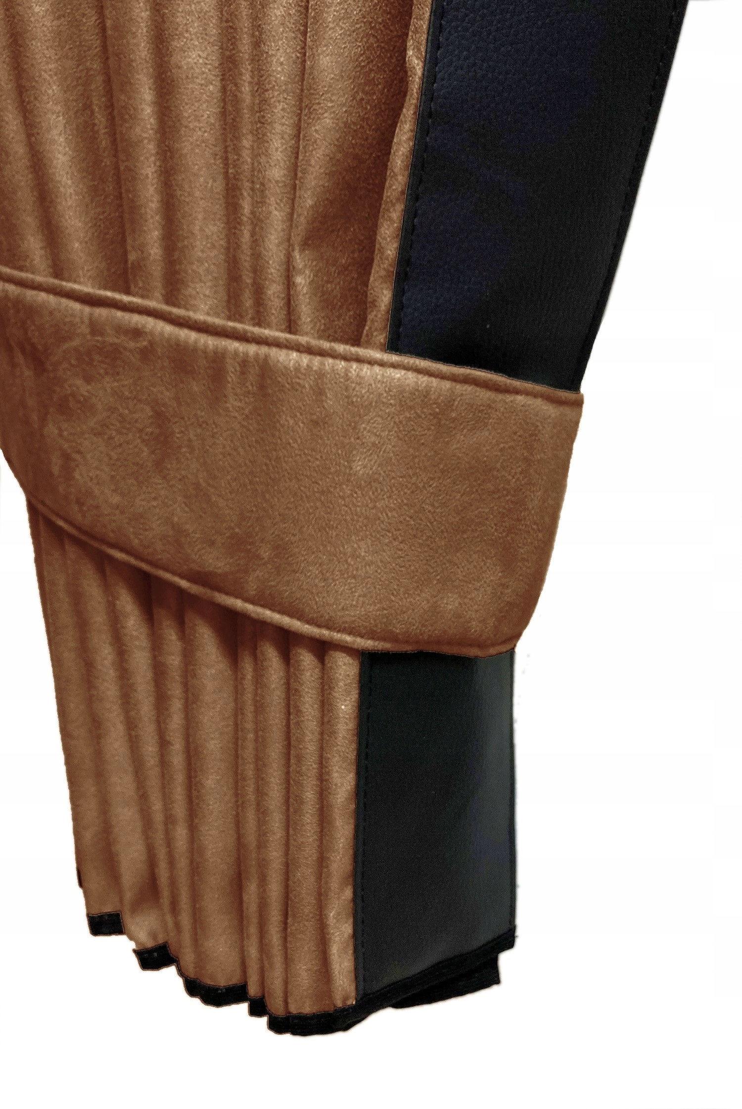 Кожна бічна штора оздоблена кромкою з екошкіри. Ширина краю 9 см. - дивіться фотографії