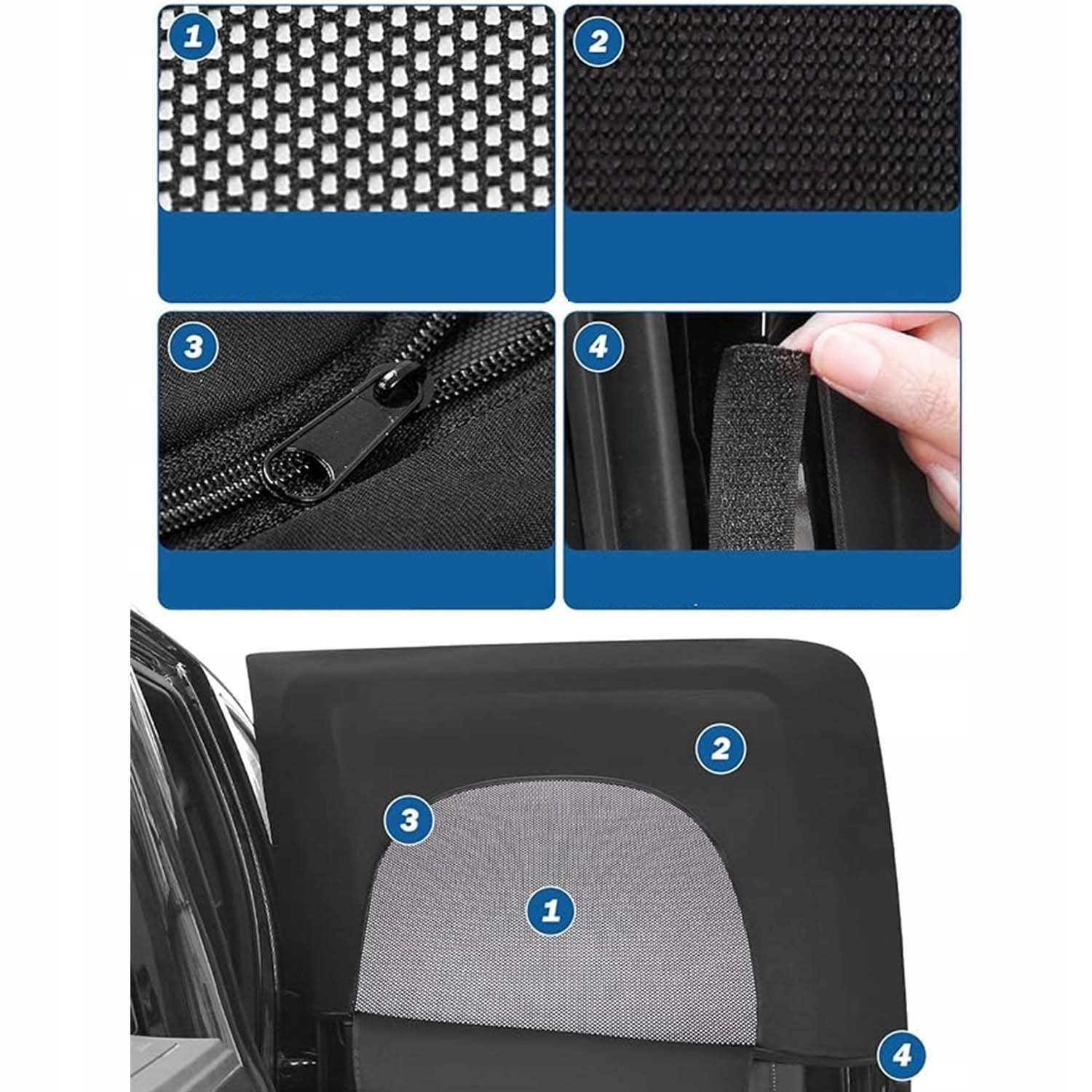 🚗🚗 【【Легка складання та розбирання】 Відкриття або закриття блискавки для встановлення шару сітки або сонячного покриву. Оснащений полегшенням встановлення на липучках без використання інструментів. (Примітка: його не можна використовувати в дощові дні і його можна помістити в сумку для зберігання). 4 Вони ефективно захищають сім'ю та інтер’єр транспортного засобу від сонця. Вони також забезпечують хорошу конфіденційність, адже перехожі -нічого не бачать через вікно.