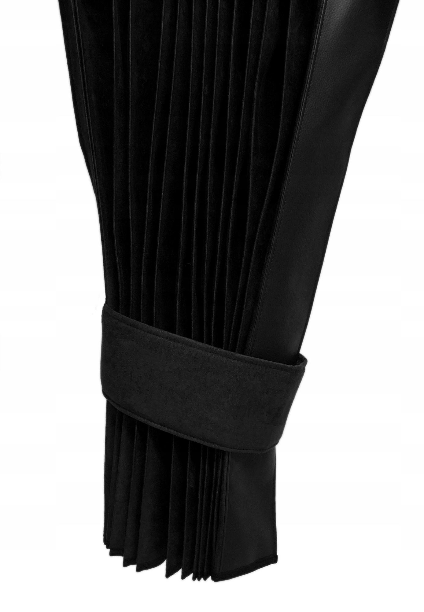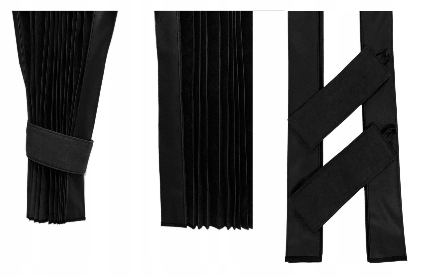 Передня частина штор - край закінчений шкіряним матеріалом, який жорстоко зміцнює всю структуру і полегшує складання після ночі