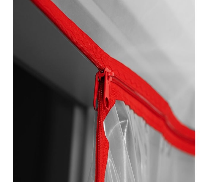 ⭐ Штора, пилозахисний чохол з L-замком PE 49-800 NEO є незамінним продуктом під час ремонту, захищаючи приміщення від пилу та пилу. Завіса призначена для ущільнення дверних прорізів. Оснащений двосторонньою клейкою стрічкою, його легко встановити. Його розміри 1230 х 2240 мм. Виготовляється з безбарвної прозорої поліетиленової плівки з більшою щільністю. Прорізна частина має форму перевернутої літери "L" зі зручною вшитою блискавкою.