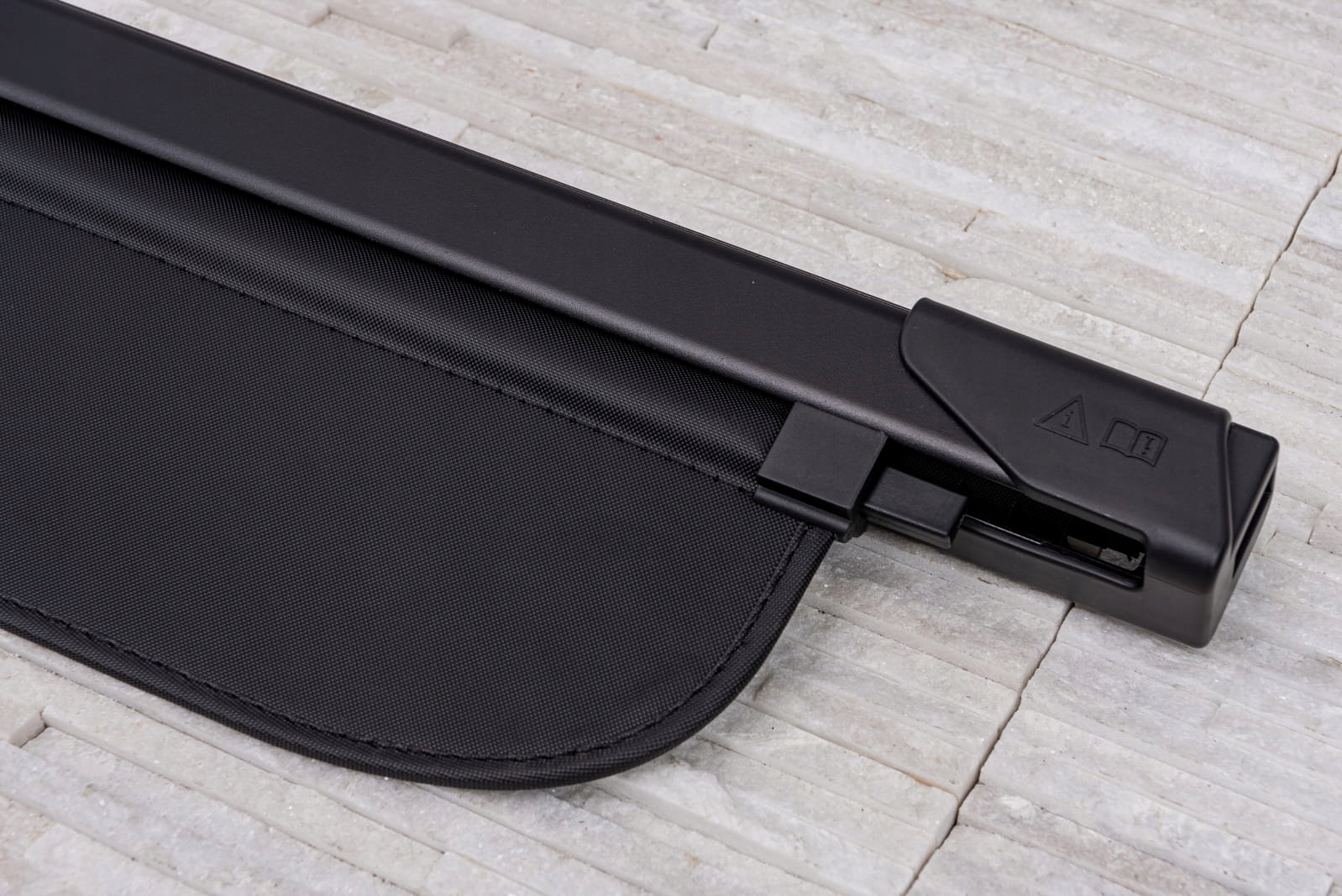 Міцна касета та алюмінієва пластина забезпечують довговічність конструкції та комфорт використання рулонної штори. Касета розроблена таким чином, щоб забезпечити стабільне кріплення в оригінальних, заводських місцях кріплення за задніми сидіннями.