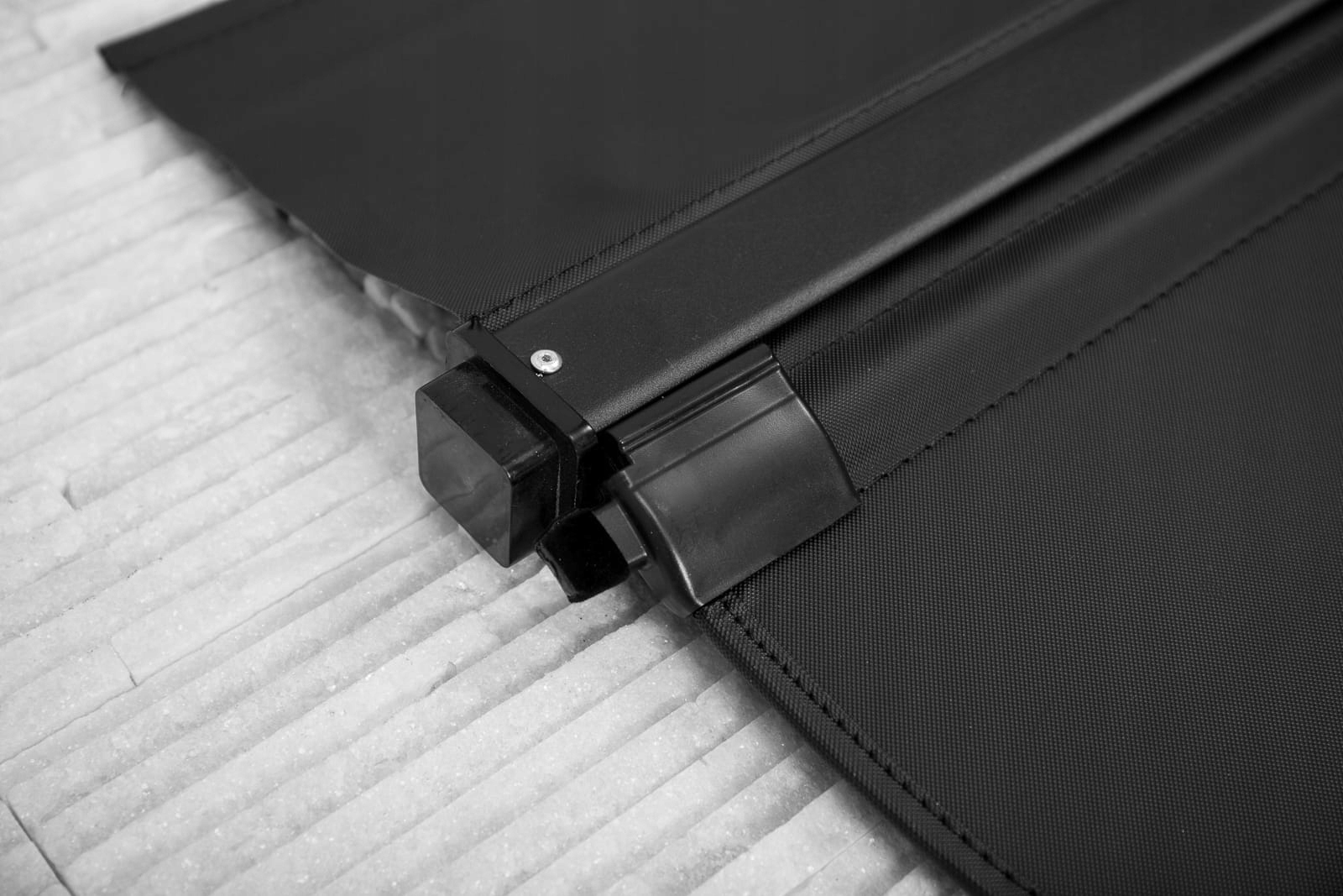 Міцна касета та алюмінієва пластина забезпечують довговічність конструкції та комфорт використання рулонної штори. Касета розроблена таким чином, щоб забезпечити стабільне кріплення в оригінальних заводських місцях кріплення за задніми сидіннями. Додаткові ручки дозволяють розгорнути штору в напрямку задньої спинки та прикріпити її до підголівників.