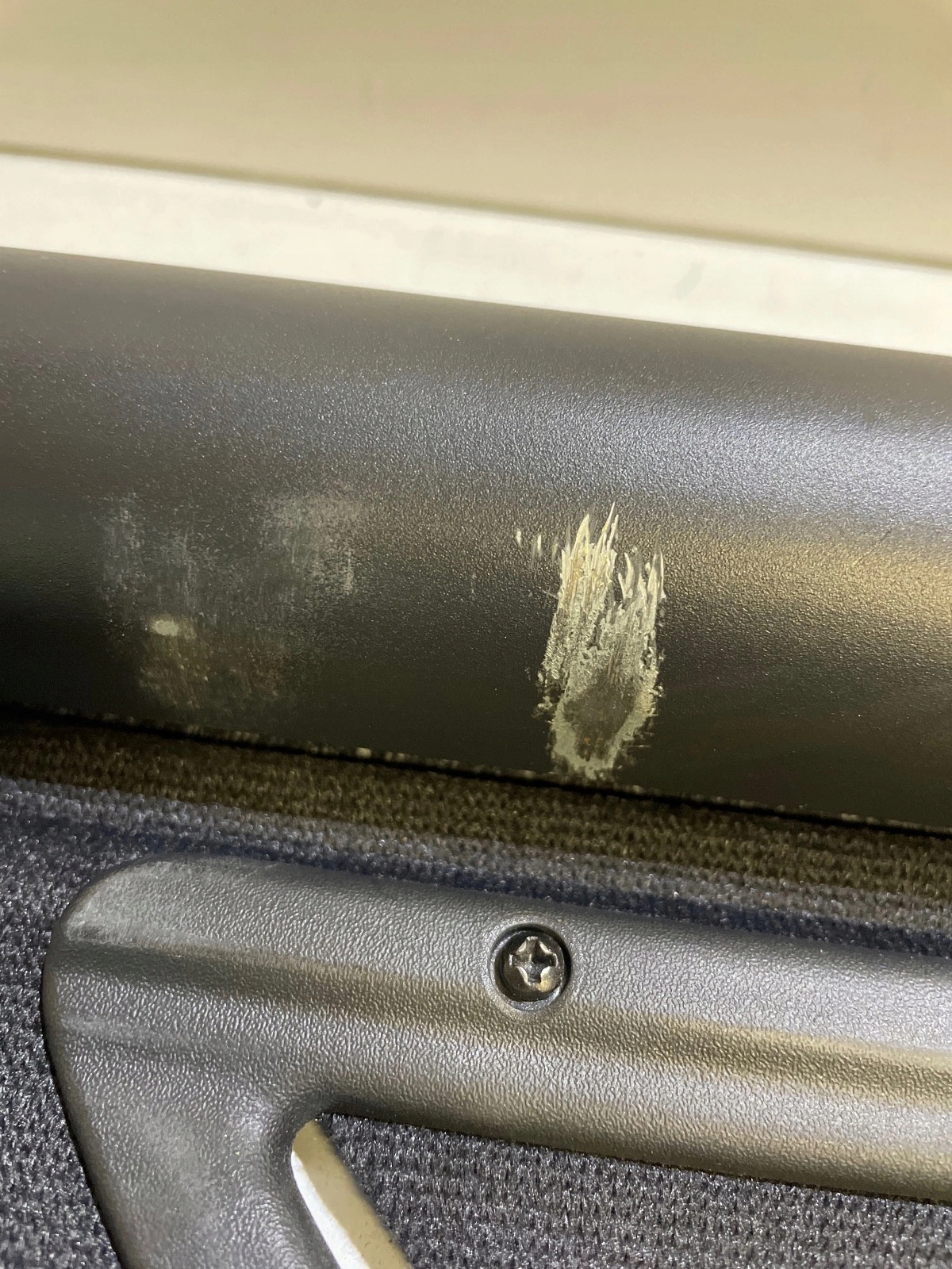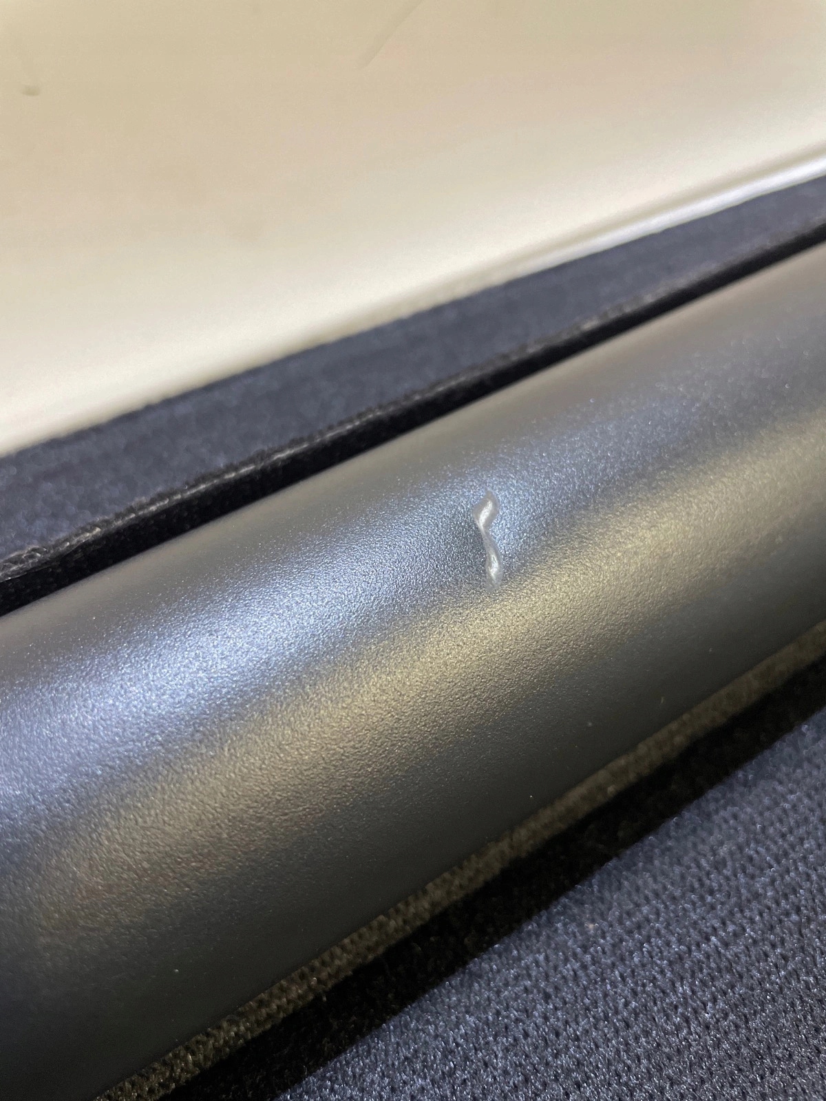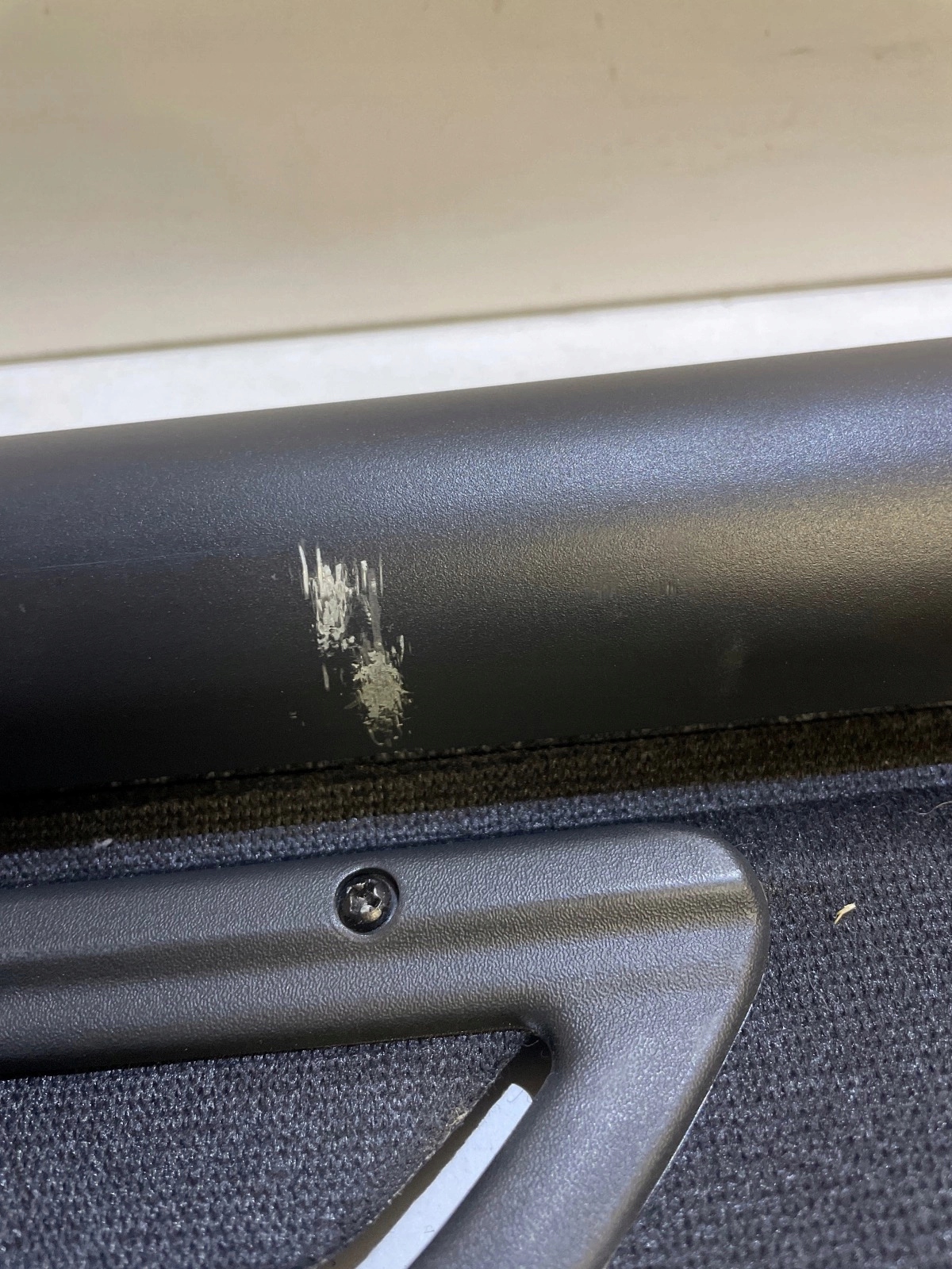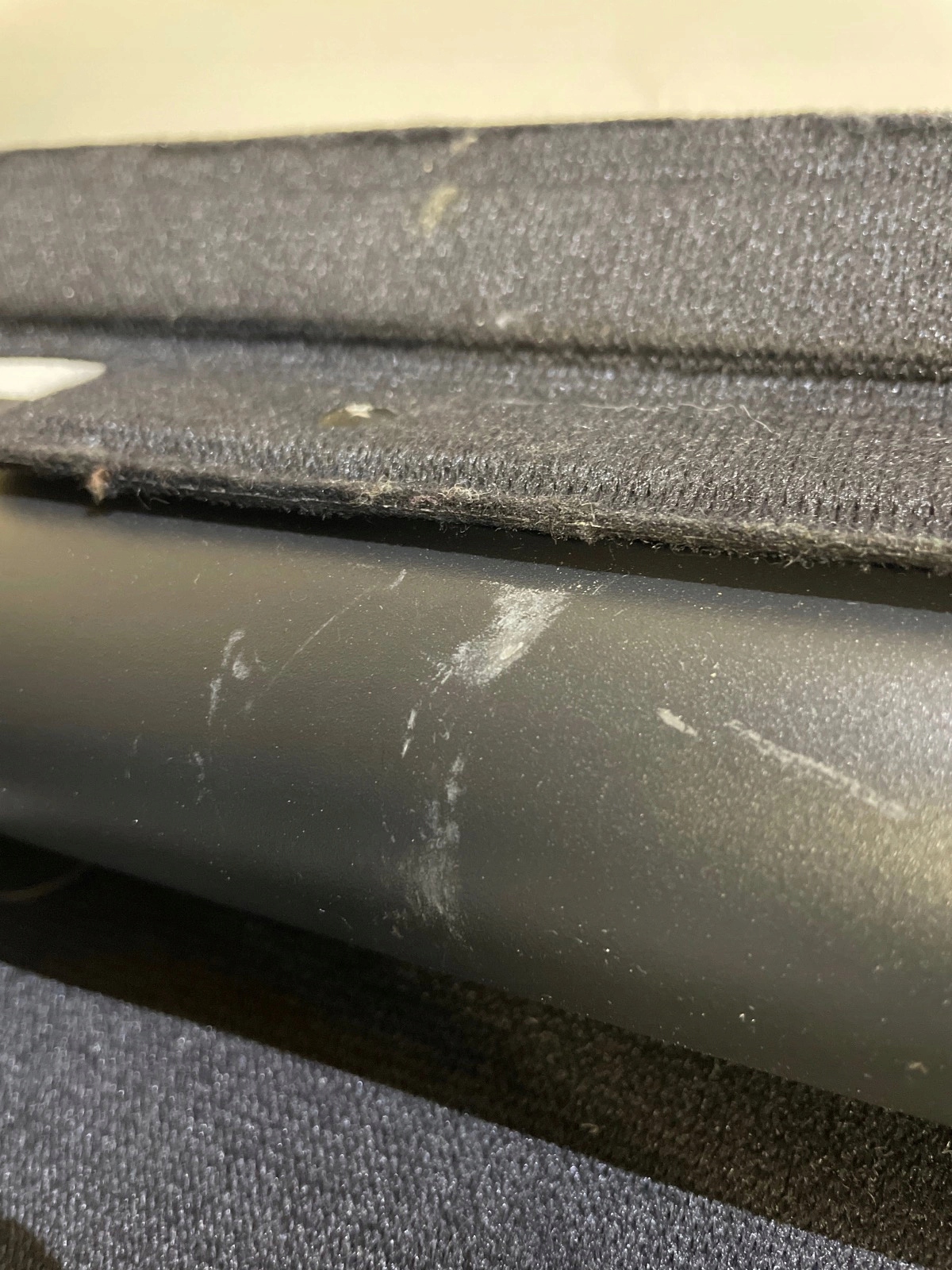 Є кілька подряпин, відколів, пошкоджений матеріал, як на фото.