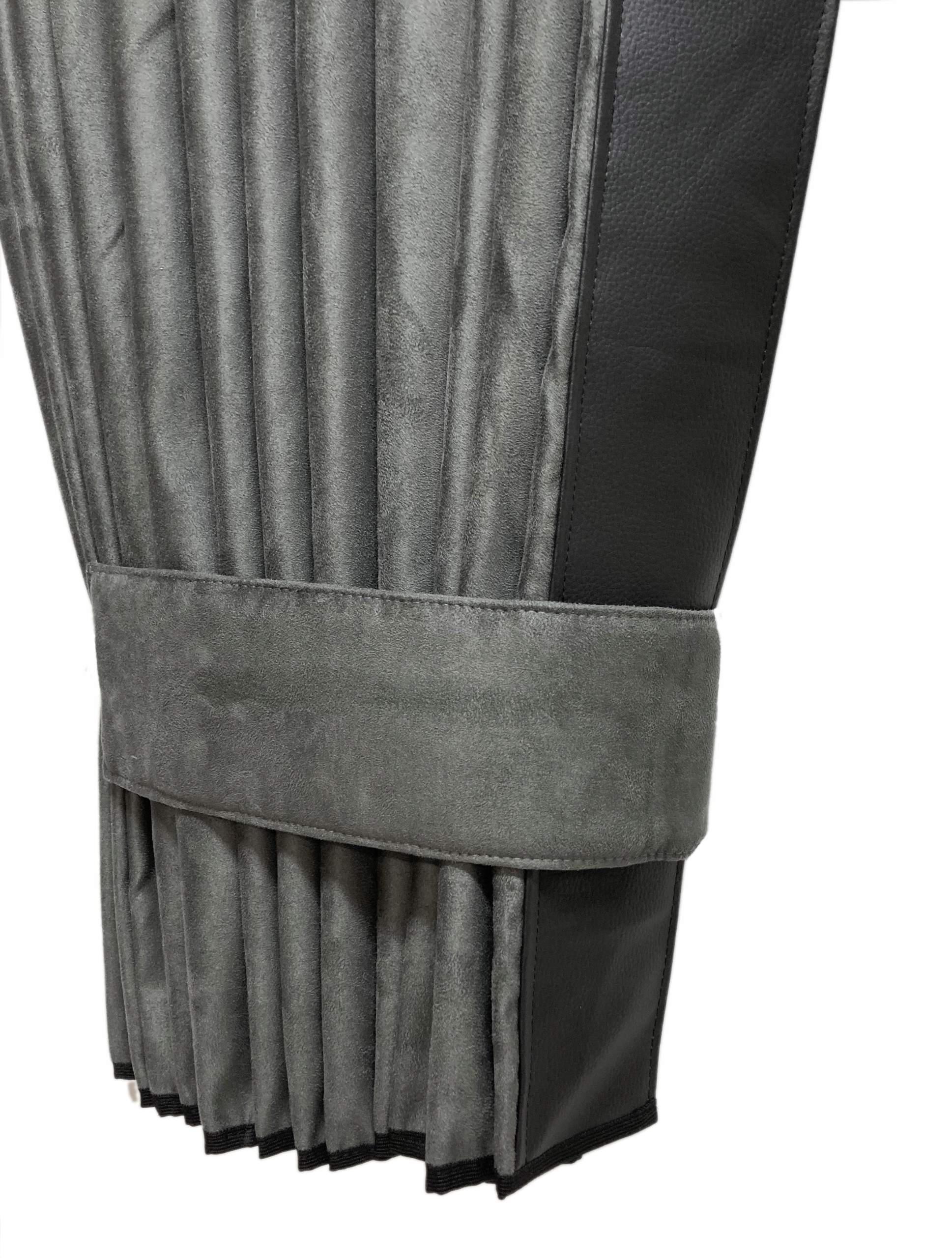 Кожна бічна штора оздоблена кромкою з екошкіри. Ширина краю 9 см. - дивіться фотографії