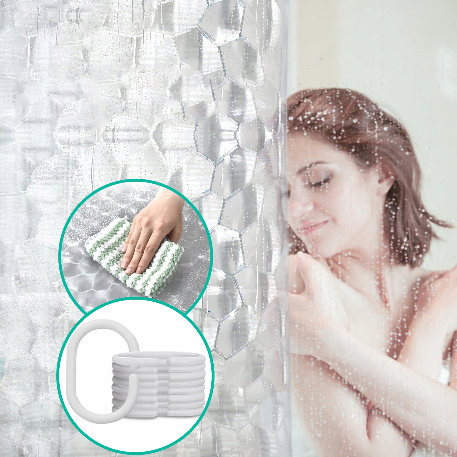 Шторка для душу прозора 3D ефект 180*200см напівпрозора