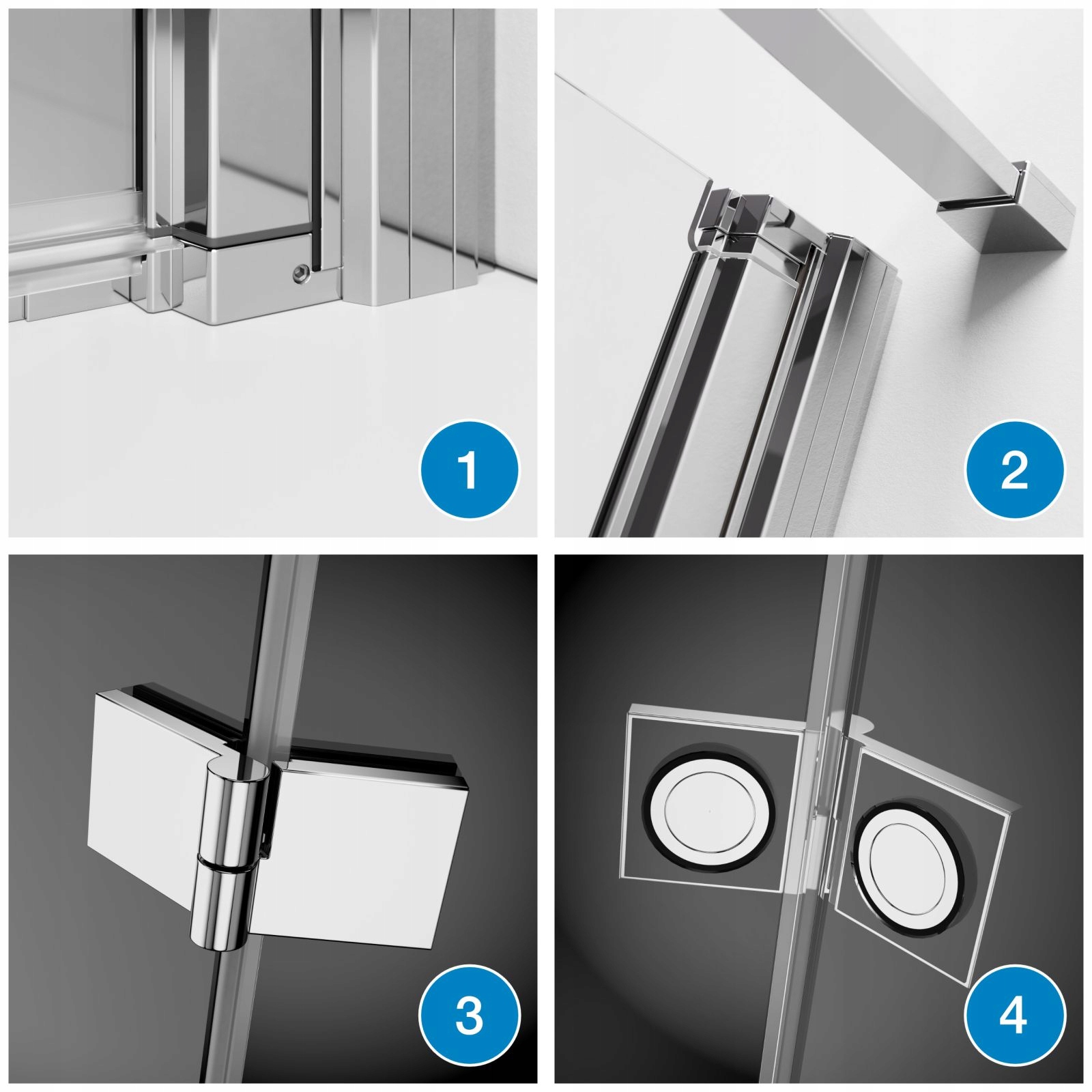 Шити з колекції Nes — це ширми з поворотними дверцятами, які дозволяють відкривати стулку ванни всередину та назовні ванни. Вони характеризуються системою трубчастих петель із дуже делікатною формою та стабільною структурою.