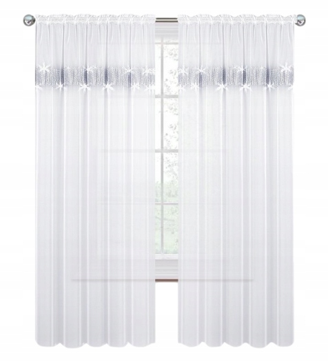 Декоративна штора з високоякісної гладкої вуалі, прикрашена зверху сріблястою стрічкою з чудово блискучими кристалами, 12 см широкий!