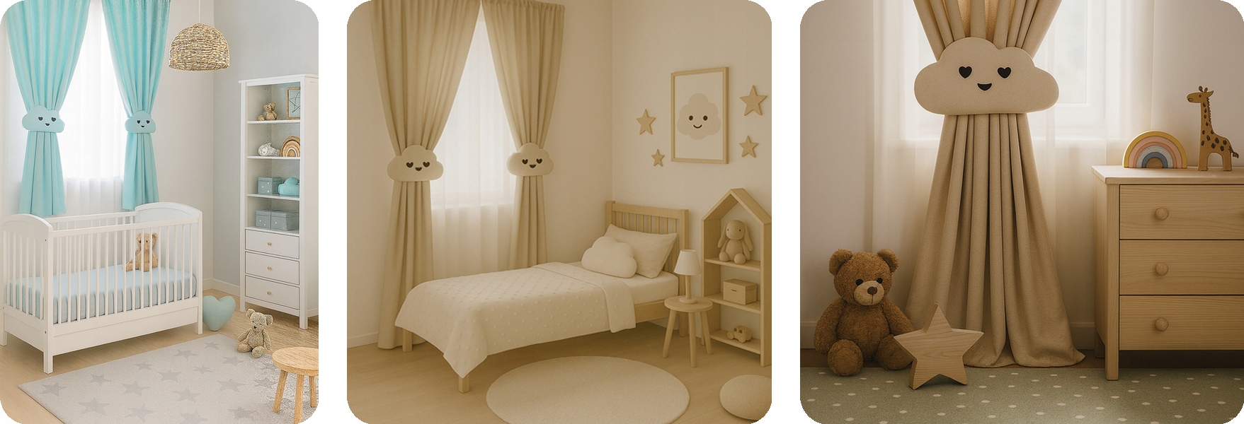 Комплект - штора для дитячої кімнати + застібка/декор хмара