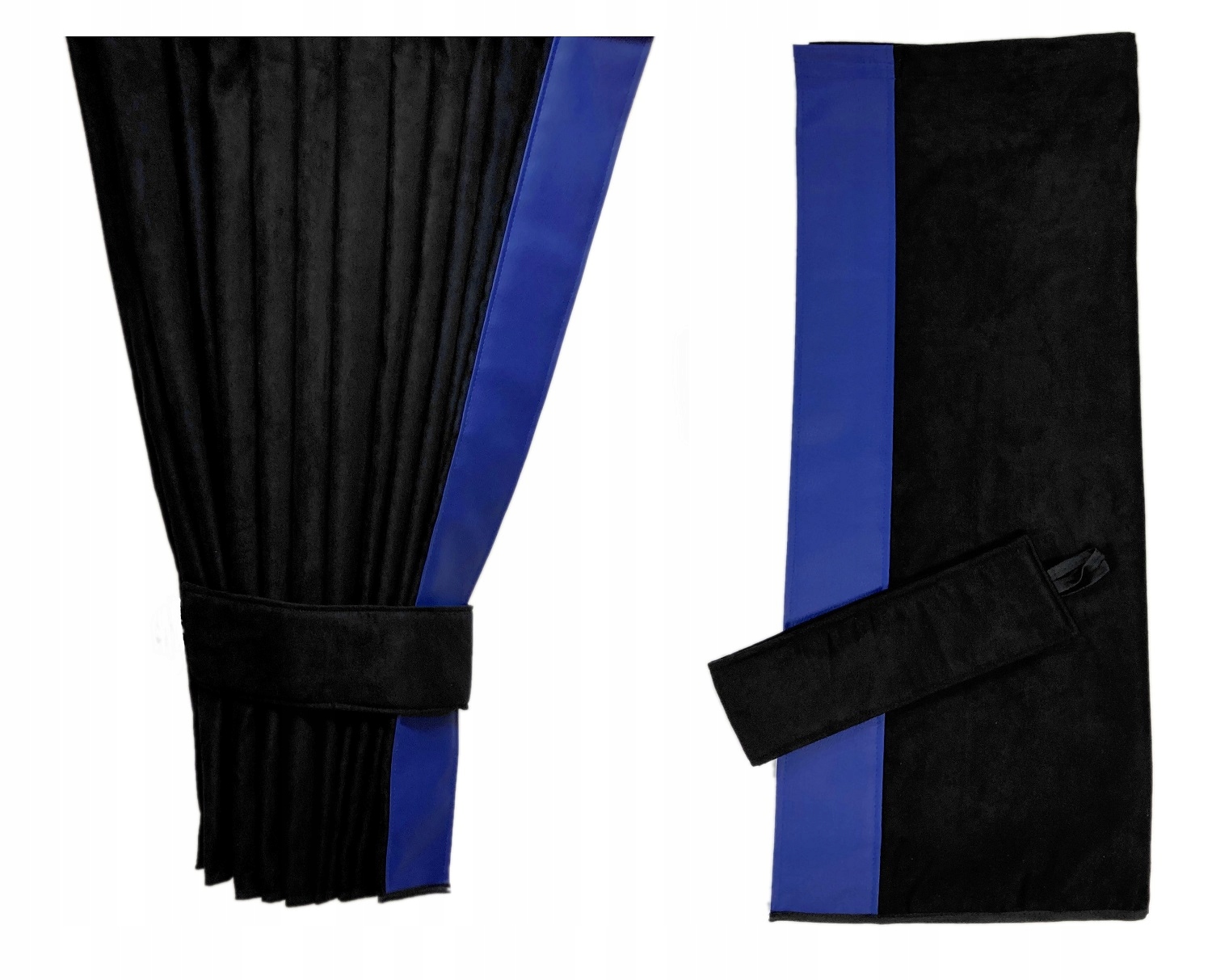 Кожна бічна штора оздоблена кромкою з екошкіри. Ширина краю 9 см. - дивіться фото