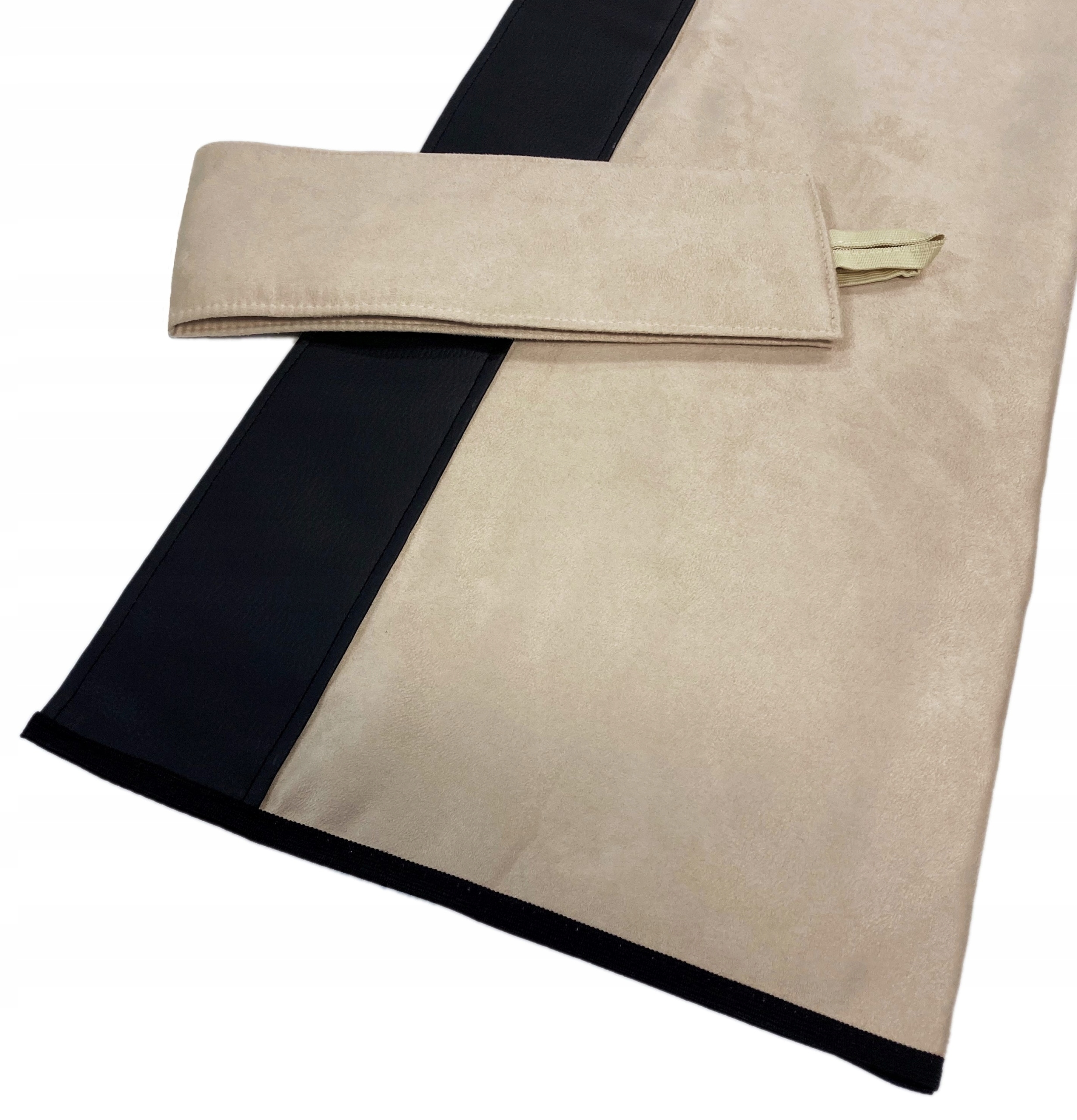 Кожна бічна штора оздоблена кромкою з екошкіри. Ширина краю 9 см. - дивіться фото