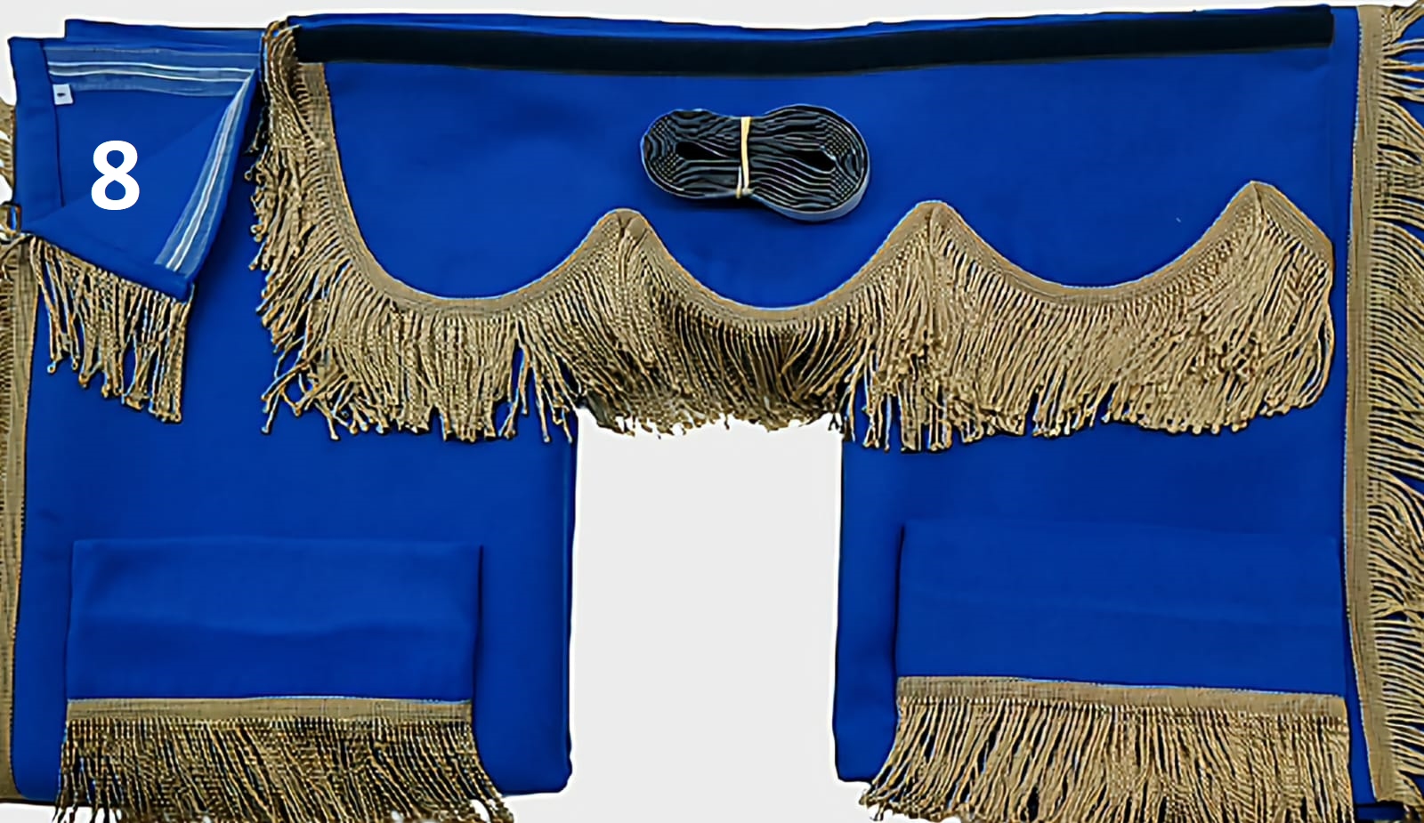 № 8 - (синій, золота обробка) Шторки на лобове скло + волан