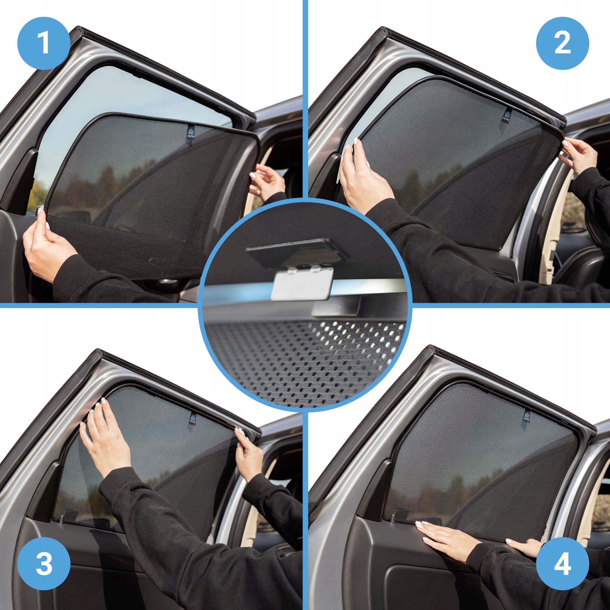 Наші автомобільні штори завжди постачаються з набором металевих кронштейнів та інструкцією зі встановлення. Звертаємо Вашу увагу, що штори RayStop® для відкривання бокових вікон створені як сонцезахисні, вони не повинні встановлюватися «вдавлюючи» і не повинні торкатися скла, як у штор інших виробників. Вже в оригінальному варіанті на шторах встановлені дуже сильні магніти для відкривання бокових вікон. Металеві ручки, які тримають штору, необхідно приклеїти до коробки дверей автомобіля (оригінальним скотчем 3М). Металеві кронштейни встановлюються один раз, а потім штори можна прикріпити або зняти в будь-який час і за лічені секунди! При демонтажі ручок скотч не залишає слідів.