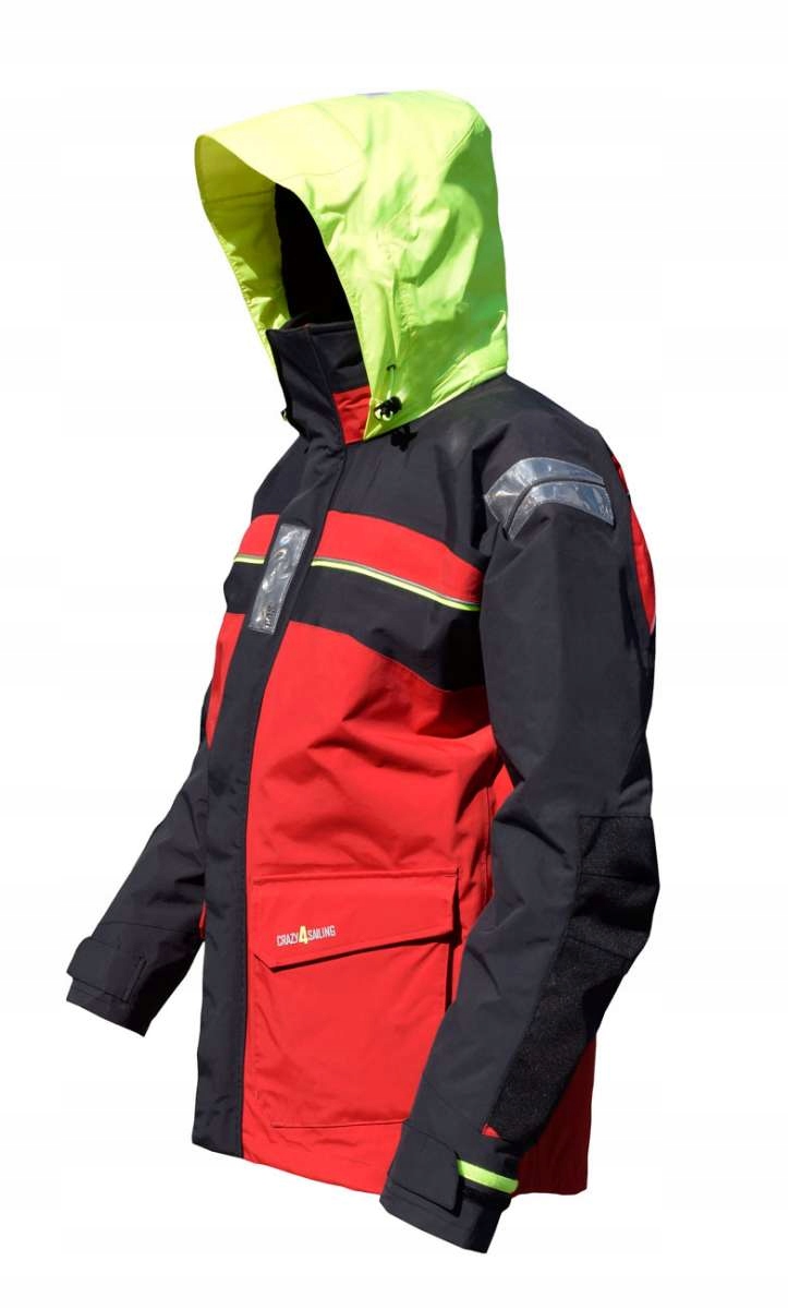 Високоякісна вітрильна куртка від німецької компанії Crazy 4 Sailing, модель Bergen. Пристосований для морської та внутрішньої навігації. Виготовлений з дихаючого і водонепроникного поліаміду з поліуретановим покриттям. Легкий і гнучкий, він має високий комір і кишені з флісовою вставкою. Світловідбиваючий капюшон прихований під коміром, подвійні манжети застібаються на липучку, світловідбиваючі стрічки, гачок для ключів, зав’язки на талії. У нашій пропозиції також є штани з цієї ж серії.