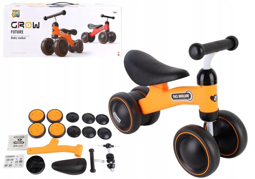 4-колісний штовхач — ідеальна іграшка для дітей віком від 12 місяців, яка підтримує руховий розвиток і баланс. Він був розроблений з урахуванням безпеки та комфорту дитини, забезпечуючи стабільність завдяки чотирьом широким колесам. Велосипед легкий, міцний і його легко зібрати, що робить його ідеальним вибором для батьків, які шукають перший автомобіль для своїх дітей.