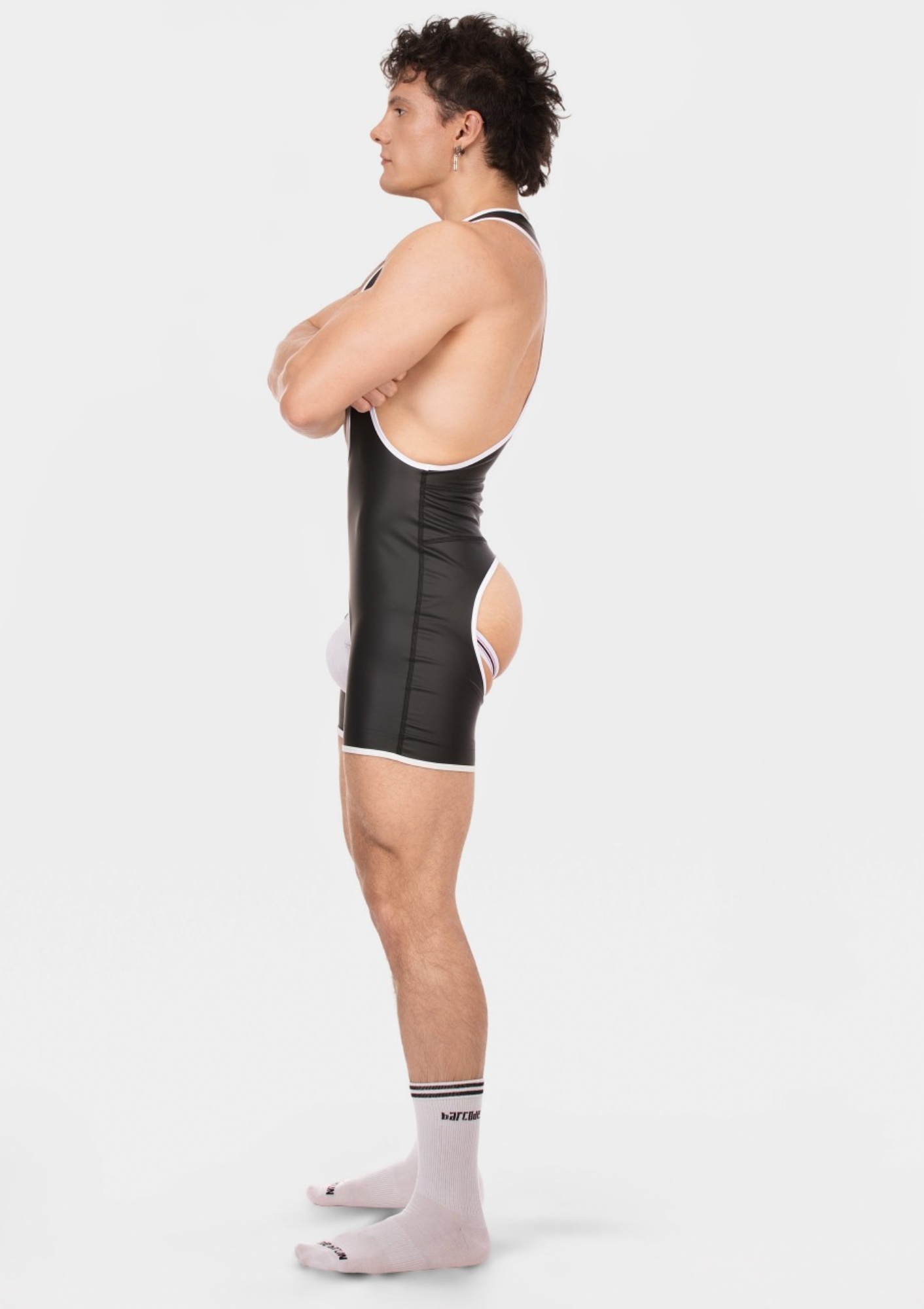 синглет Кам Уайт - це відповідний, боротьба з сміливим, сучасним персонажем. Зроблений з високоякісної імітації шкіри, вона поєднує тяжкість і витонченість. Глибокі вирізи з боків відкривають груди та верхню частину тулуба, підкреслюючи фігуру та додаючи сексуальну привабливість.