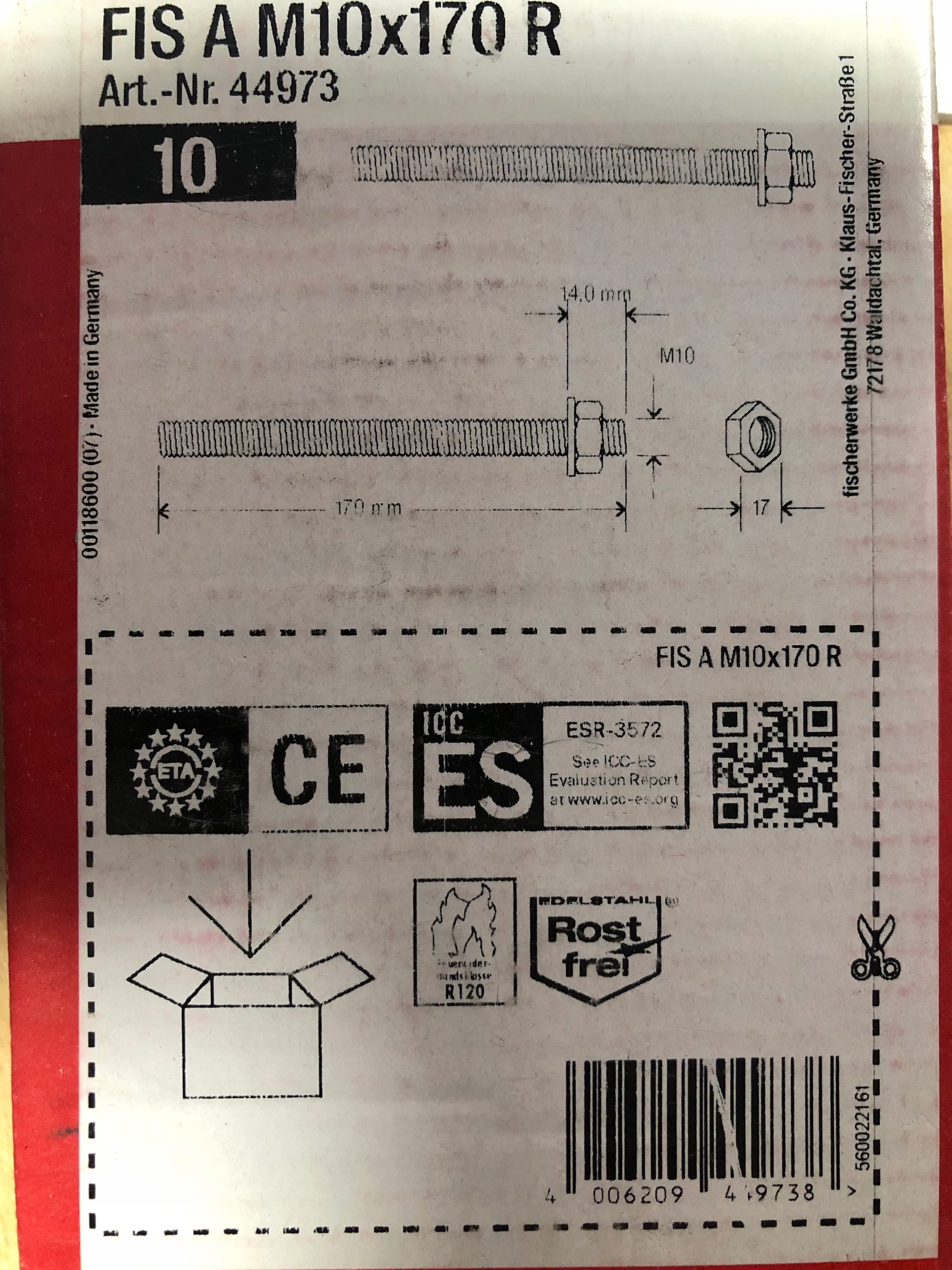 Оплачивая «FISCHER FIS A РЕЗЬБОВЫЙ СТЕРЖЕНЬ M10X170 R», вы можете быть уверены, что данный товар из каталога «Анкеры» будет доставлен из Польши и проверен на целостность. В цене товара, указанной на сайте, учтена доставка из Польши. Внимание!!! Товары для Евросоюза, согласно законодательству стран Евросоюза, могут отличаться упаковкой или наполнением.