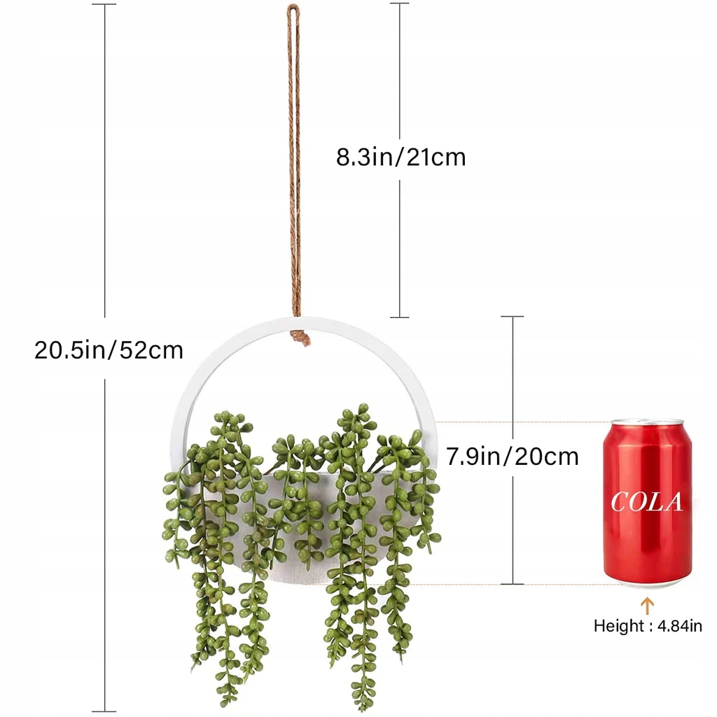 - Яскраві та чарівні: наші штучні підвішені сукуленти виготовлені з безпечного високоякісного пластику. Виконано у вигляді намиста зі штучних перлин у дерев'яному горщику. До кожної штучної рослини додається шнурок, який можна легко підвісити в різних місцях. Розмір не надто великий, але й не малий, справді милий вибір для щоденного декорування.