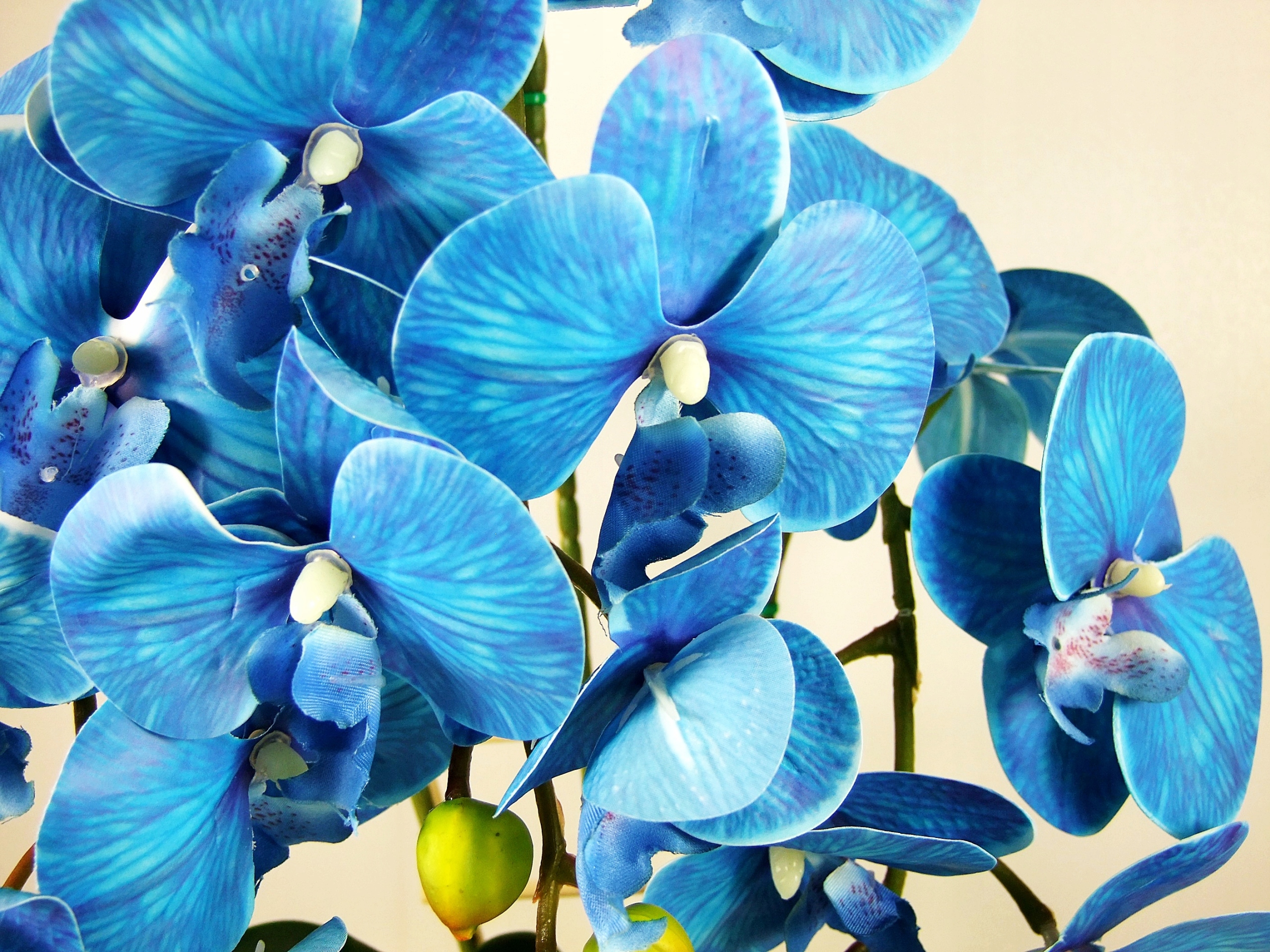 Штучна блакитна орхідея, з трьома стеблами, з крабовим мохом