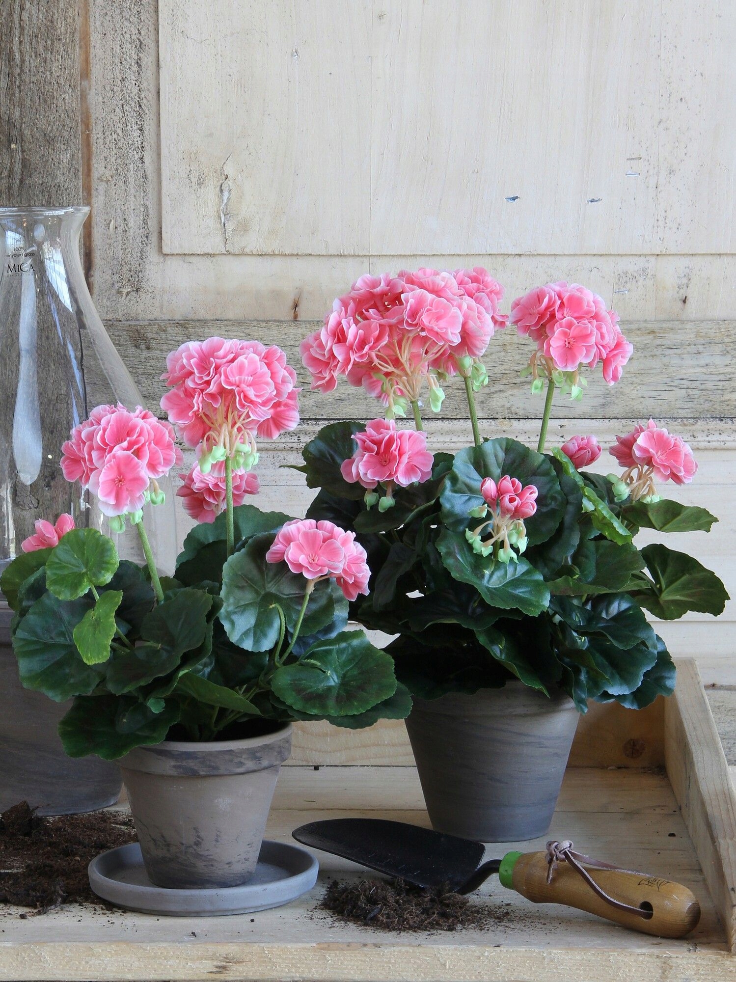 Штучна герань лососева 34 см в теракотовому горщику, серія Premium
