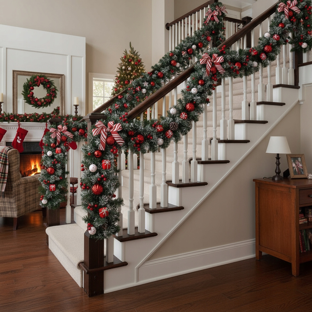 РІЗДВОВА ГІРЛЯНДА 180 СМ | БІЛО-ЧЕРВОНЕ | ПРИКРАШЕНИЙ | ШТУЧНИЙ ЛАНЦЮЖ | ДЕКОР ДЛЯ КАМІНУ, ДВЕРЦІВ, ПЕРЕЙЧІВ, СТОЛІВ