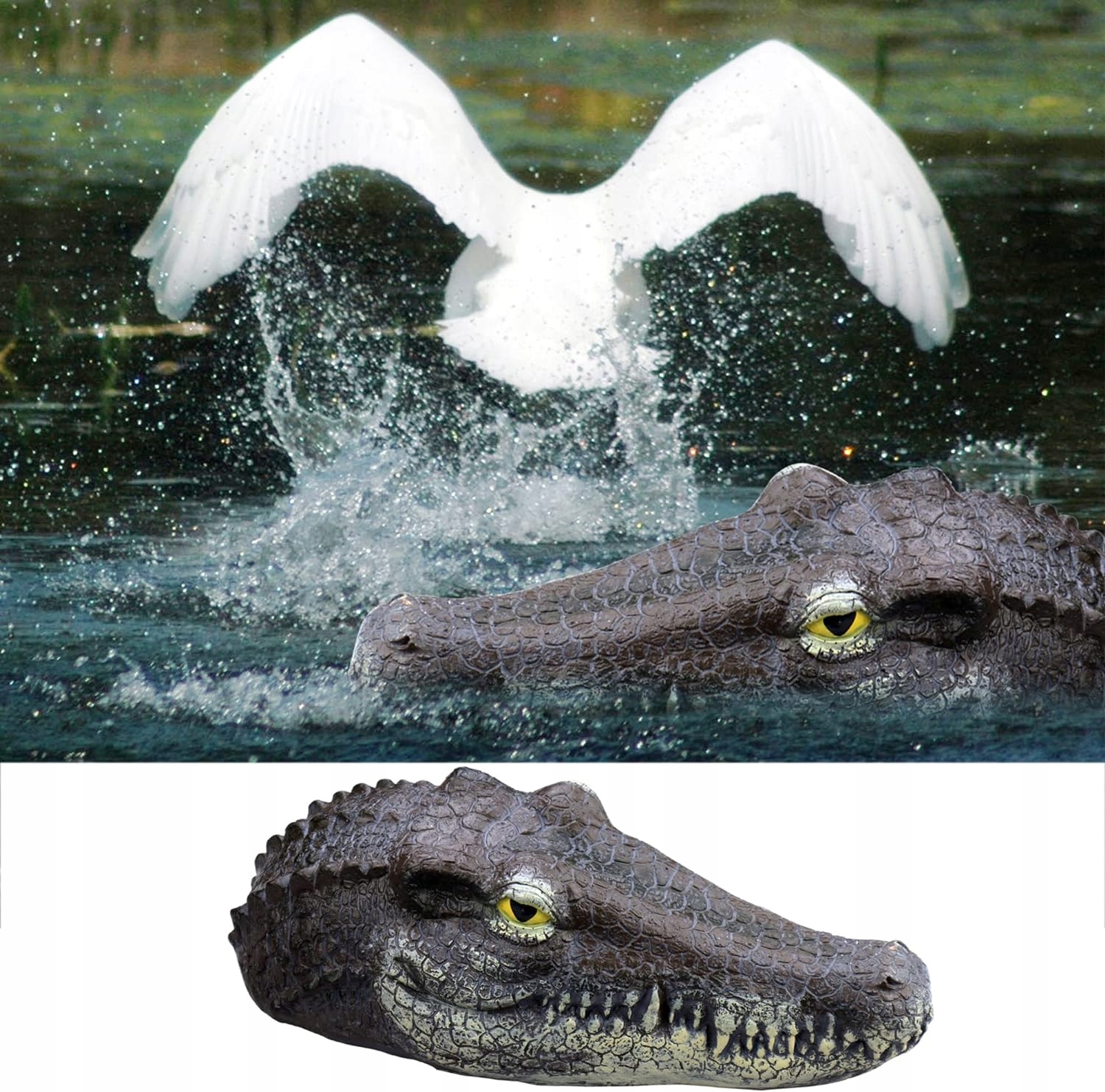 memeyou Плаваюча голова алігатора в ставку. Голова крокодила. Басейн. Поплавок. Відлякувач качок. Аксесуари для ставків. Аксесуари для лову риби. На відкритому повітрі. Прикраса саду.