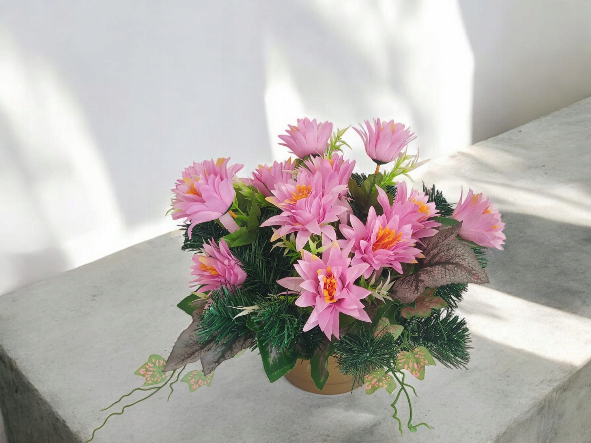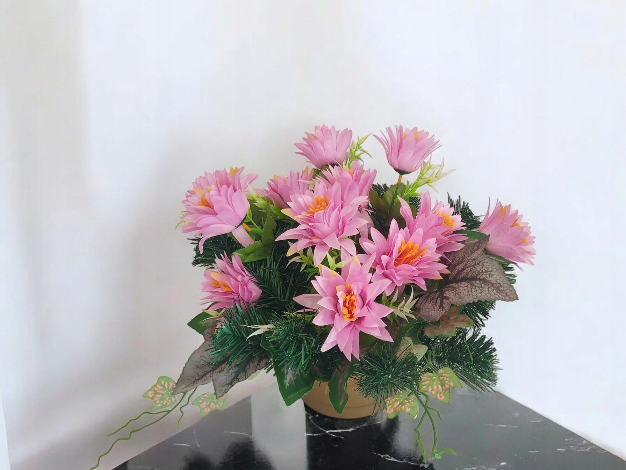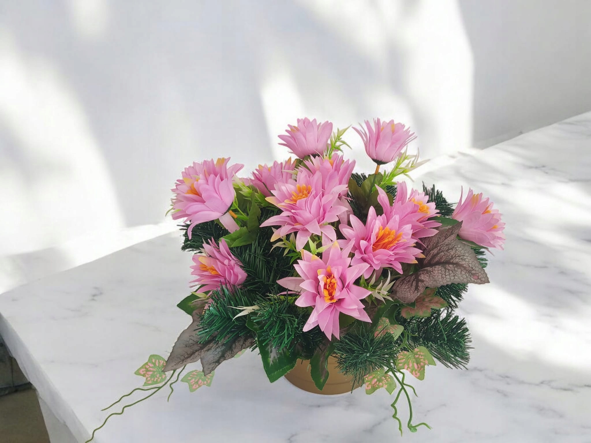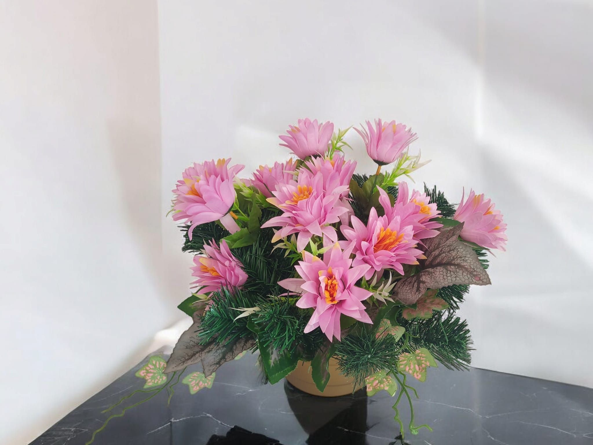 Ви шукаєте елегантну та тривалу прикрасу для могили коханої людини? Наші квіткові композиції з штучних рослин - відмінний вибір, який поєднує естетику з функціональністю.