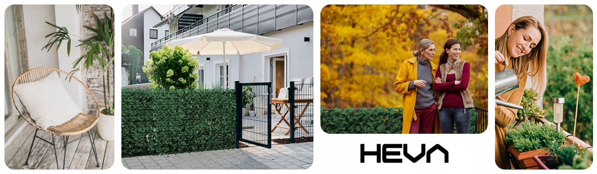 Штучна жива огорожа HEVA виготовлена з високоякісного пластику, завдяки чому вона стійка до погодних умов і дуже проста в обслуговуванні цілий рік. Штучну живопліт можна легко встановити будь-де за допомогою кабельних стяжок. Реалістичні відтінки листя гарантують візуальний ефект, близький до природного.