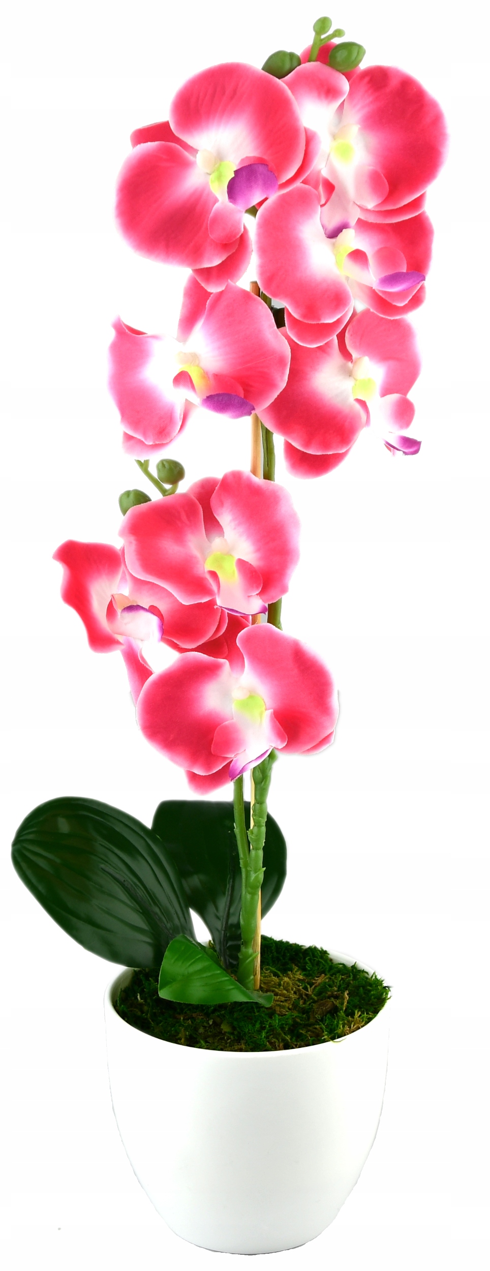 - Орхідея штучна в пластиковому горщику білого кольору. Квітка з одним пагоном, бутони, листя - все це робить квітку реалістичною, а її перевага перед справжньою в тому, що своєю чарівністю вона буде радувати цілий рік, її не потрібно поливати, вона ніколи не зів'яне . Він додасть шарму будь-якому інтер'єру, а також добре підійде на вулиці.