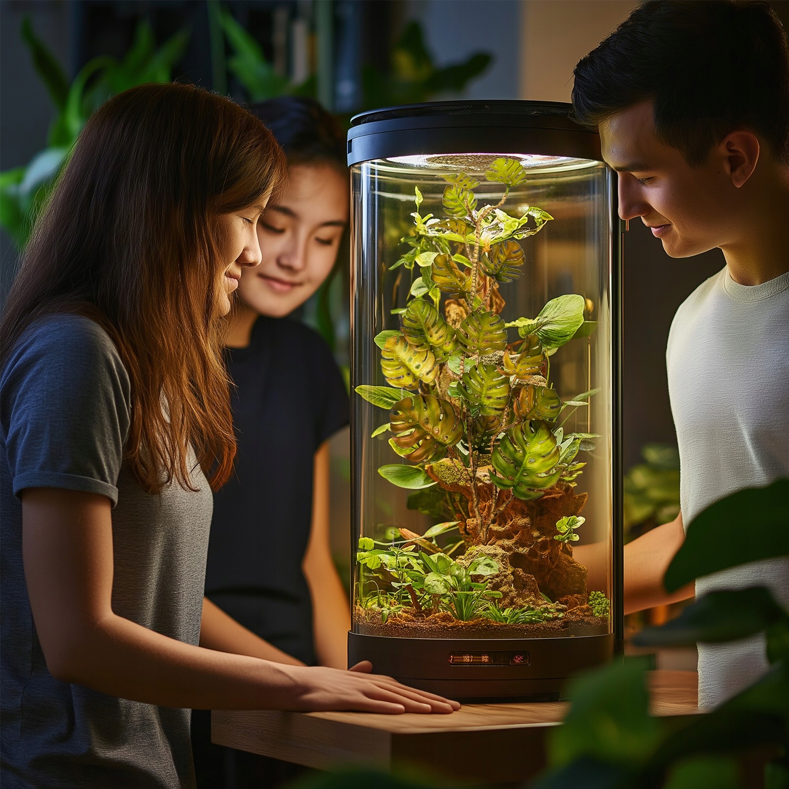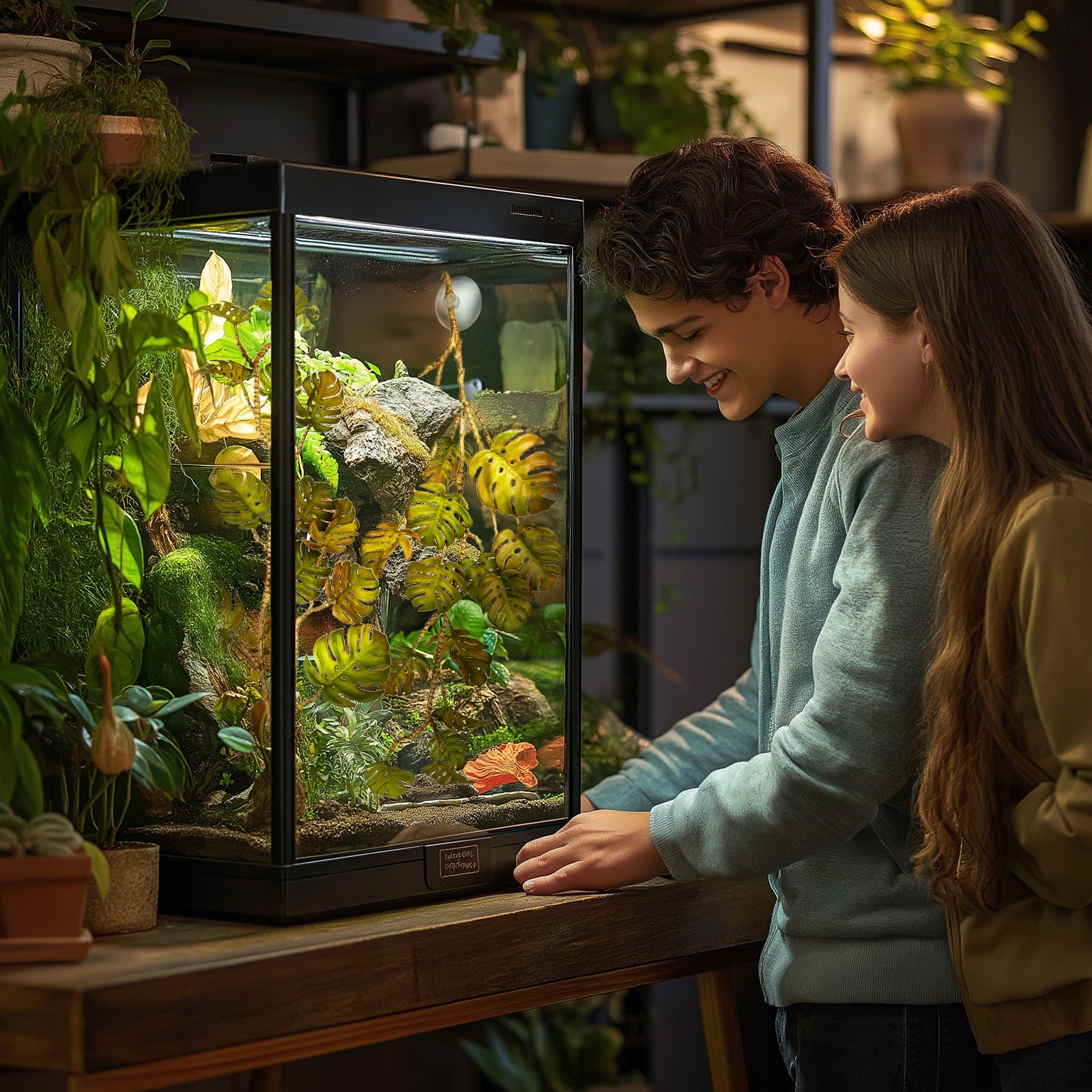- Природний дизайн: Декорація натхненна листям монстери, що створює реалістичний тропічний вигляд тераріуму.