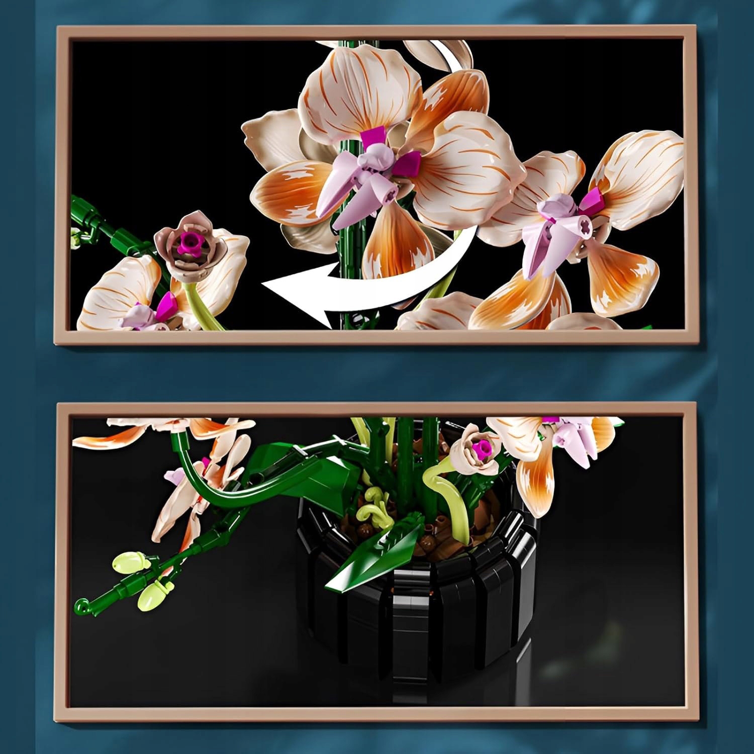 🌼 Динамічний дизайн: Плюстки квітів і гілочки можна гнучко регулювати під кутом. Пелюстки та гілочки можна вільно регулювати. Ступінь відкриття та закриття пелюсток і розведення гілок можна вільно формувати, тож статичні блоки можуть демонструвати колихання краси справжніх орхідей, що привносить відчуття анімації в оформлення кімнати.