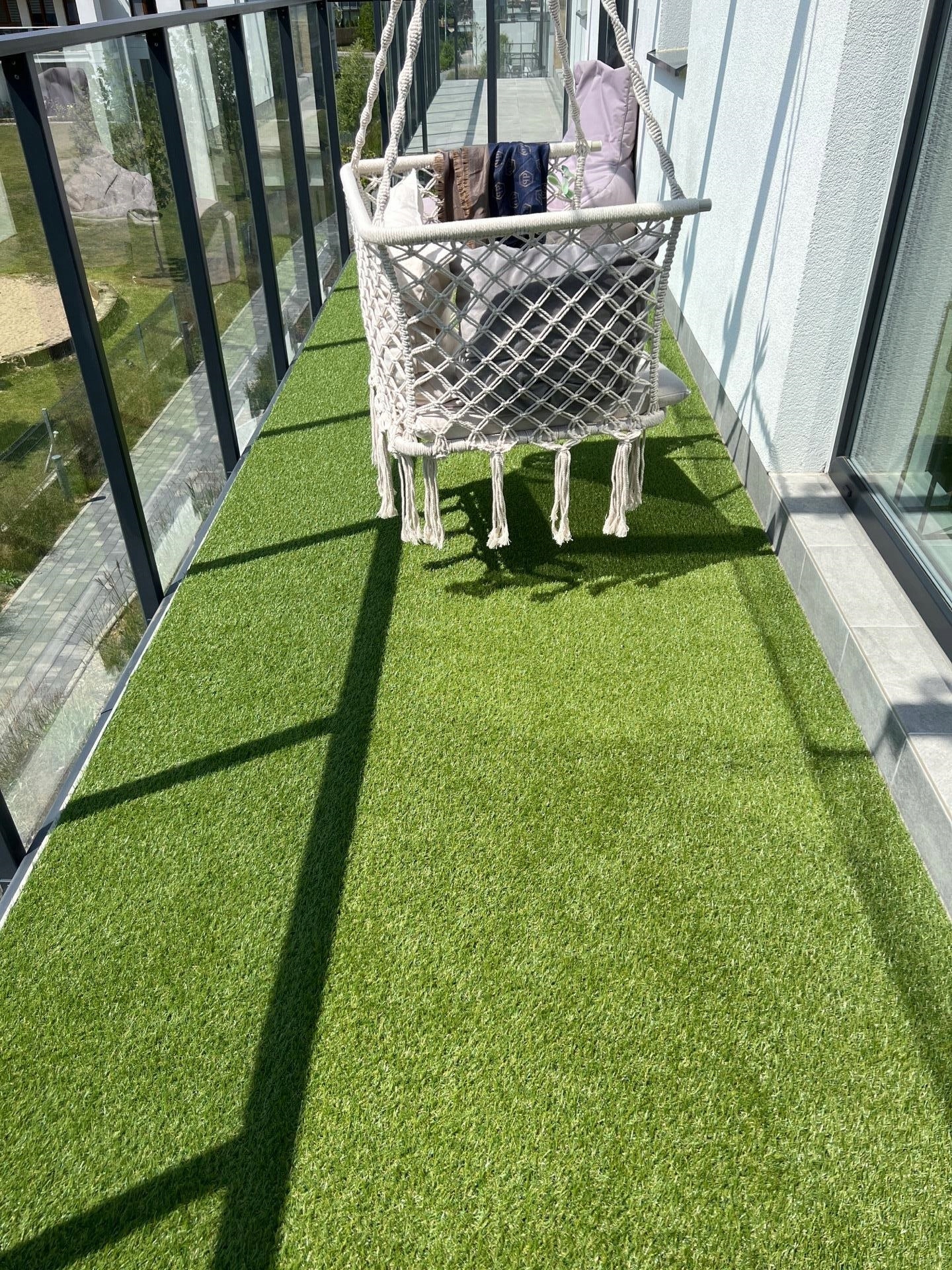 - Легший догляд: штучна трава не потребує поливу, удобрення чи косіння, що означає економію часу та грошей на її догляд.