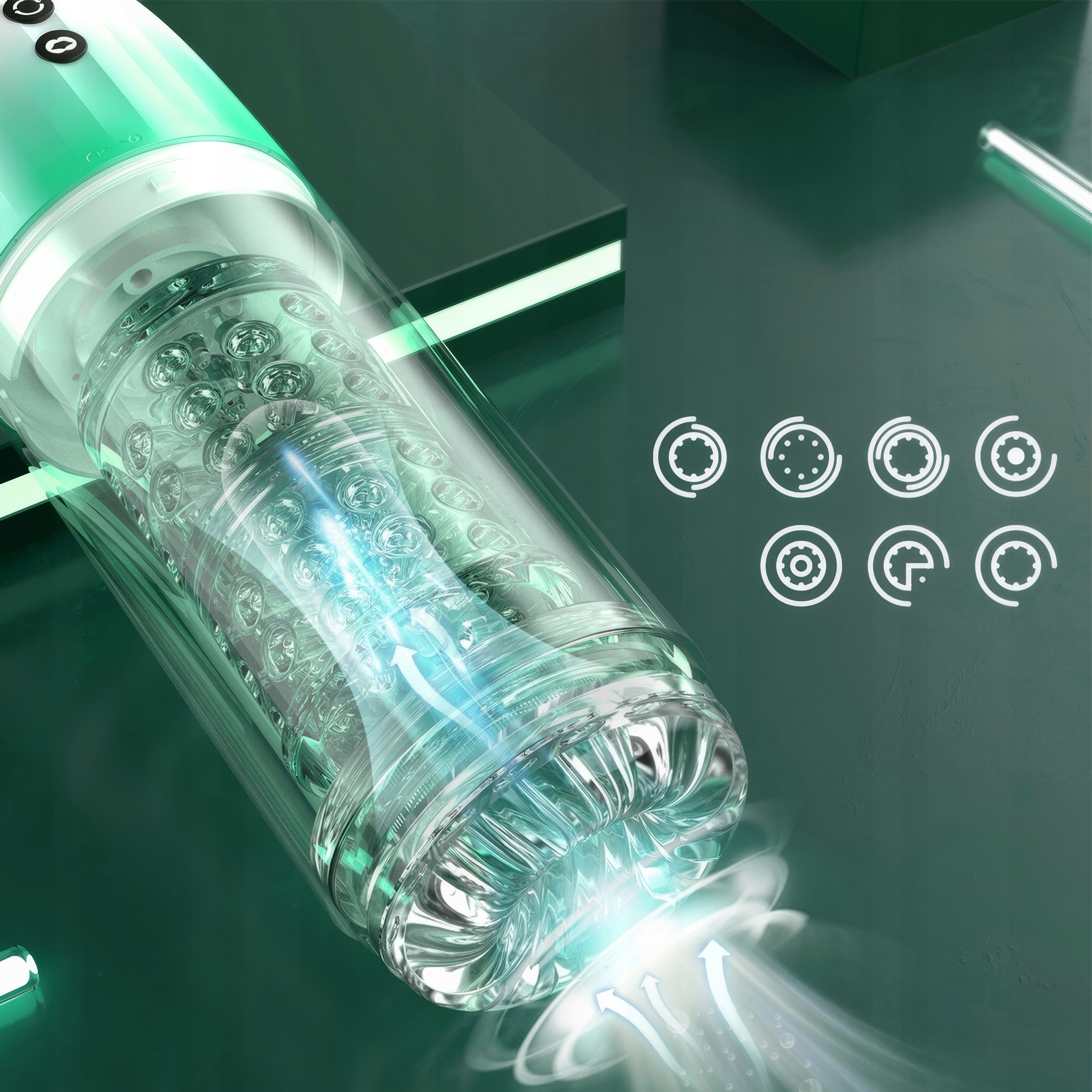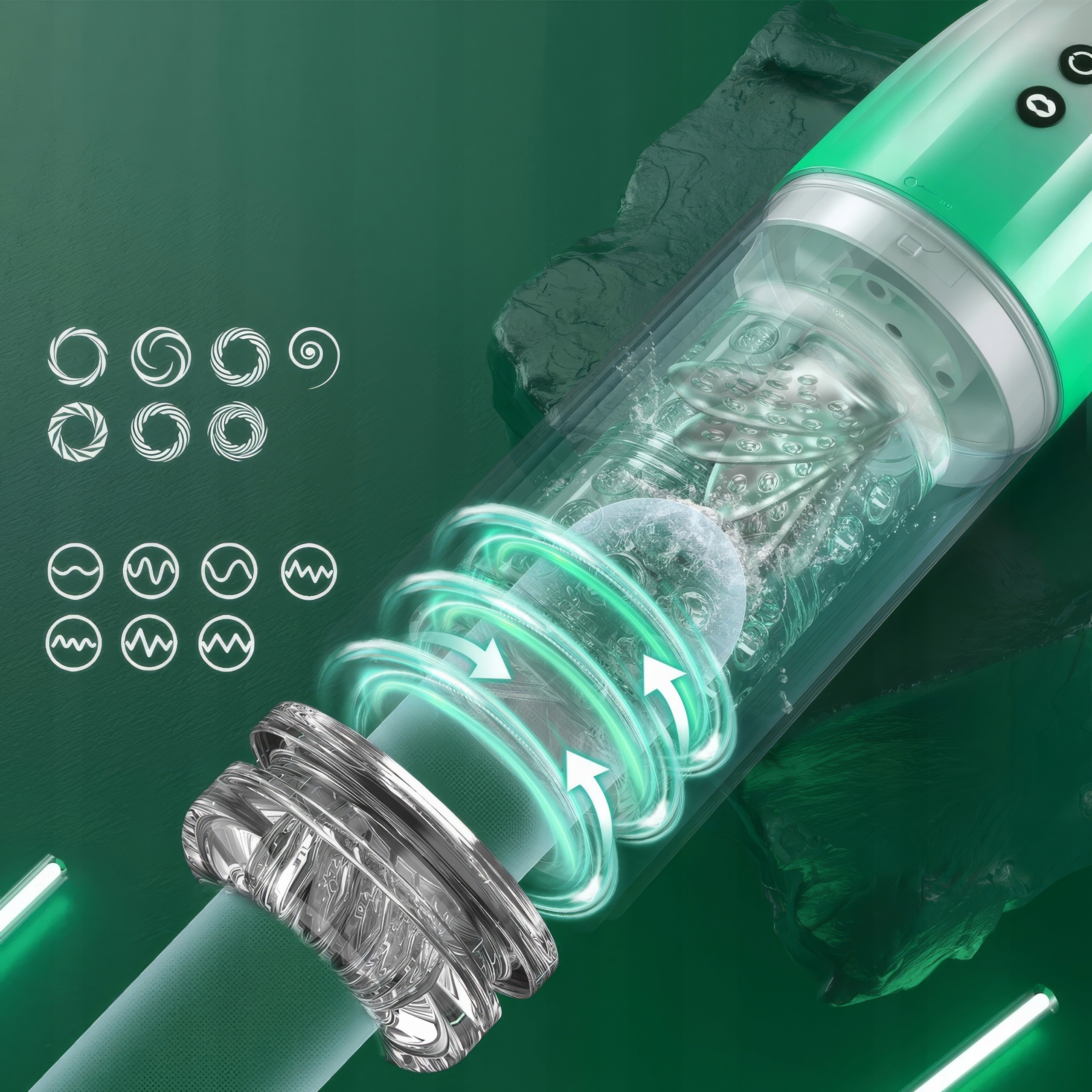 Масурбатор має7 функцій: обертання, смоктання та облизування. Крім того, він працює як вакуумний насос, який забезпечить вам більш тривалу, більшу, міцнішу та довготривалу ерекцію. Це ідеальний інструмент для самозадоволення. Ви легко знайдете щось для себе, щоб досягти максимального задоволення. Оснащений м'яким текстурованим рукавом з отвором TPE, він простий у використанні та приносить неймовірне задоволення. Внутрішній рукав мастурбатора це підкладені виступи, які створюють міцну оболонку, масажуючи чутливий стрижень з кожним рухом під час використання іграшки - що призводить до неймовірного оргазму. Після використання ви можете безпечно вийняти вкладиш зсередини, очистити його, висушити та вставте його назад. Виріб водонепроникний, тому його можна брати з собою у ванну або душ. Відчуйте неймовірні моменти полегшення з цим унікальним мастурбатором!